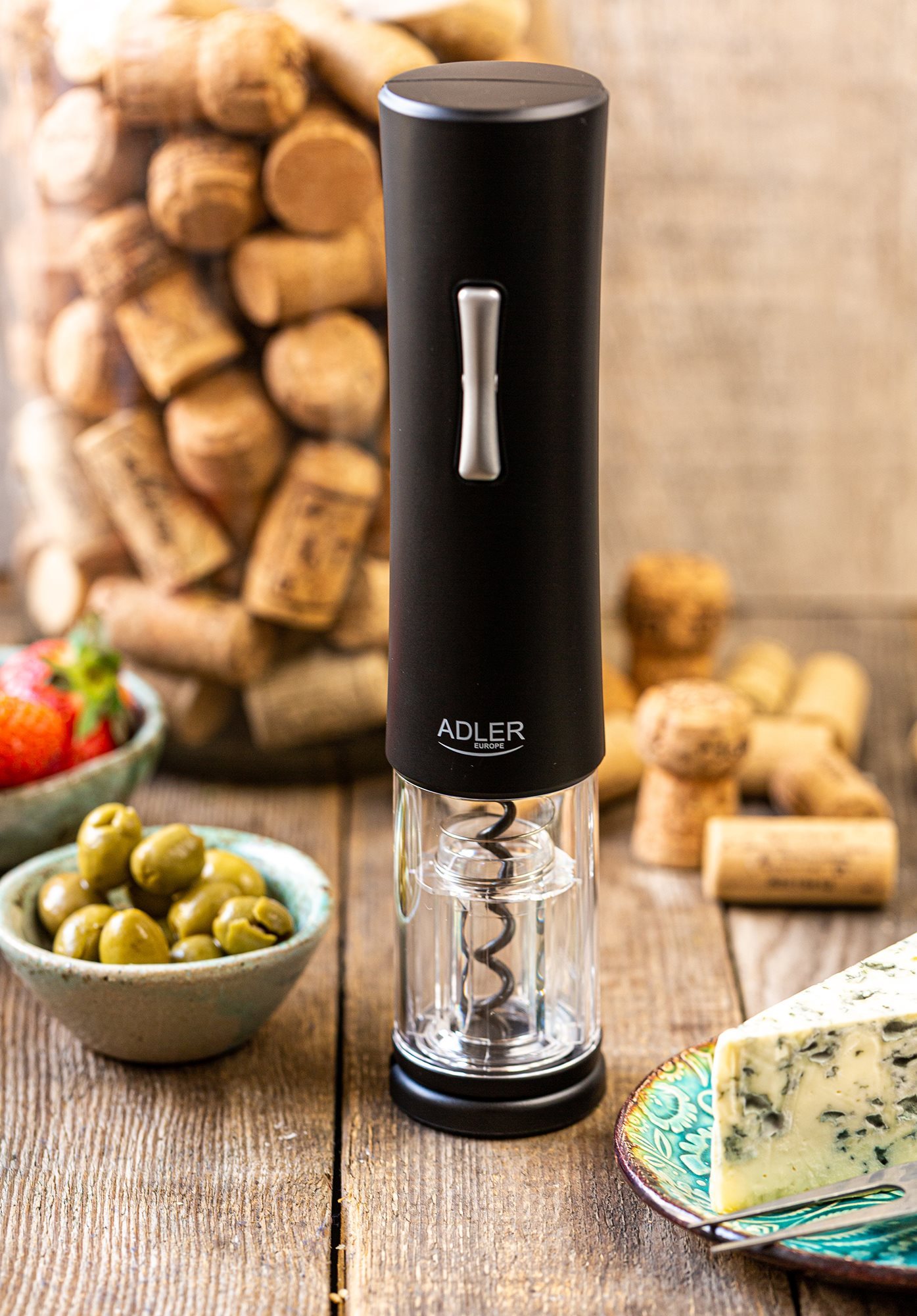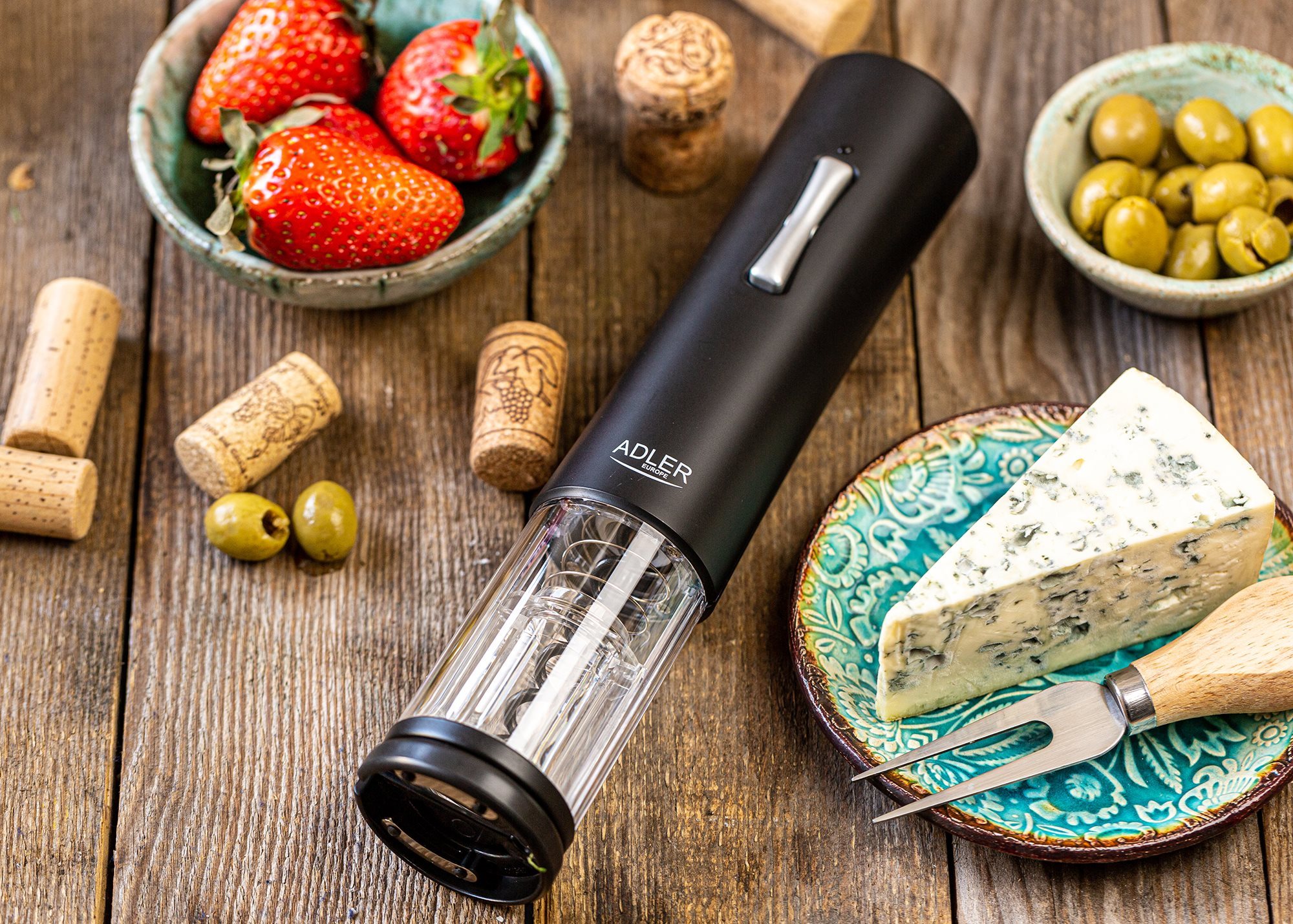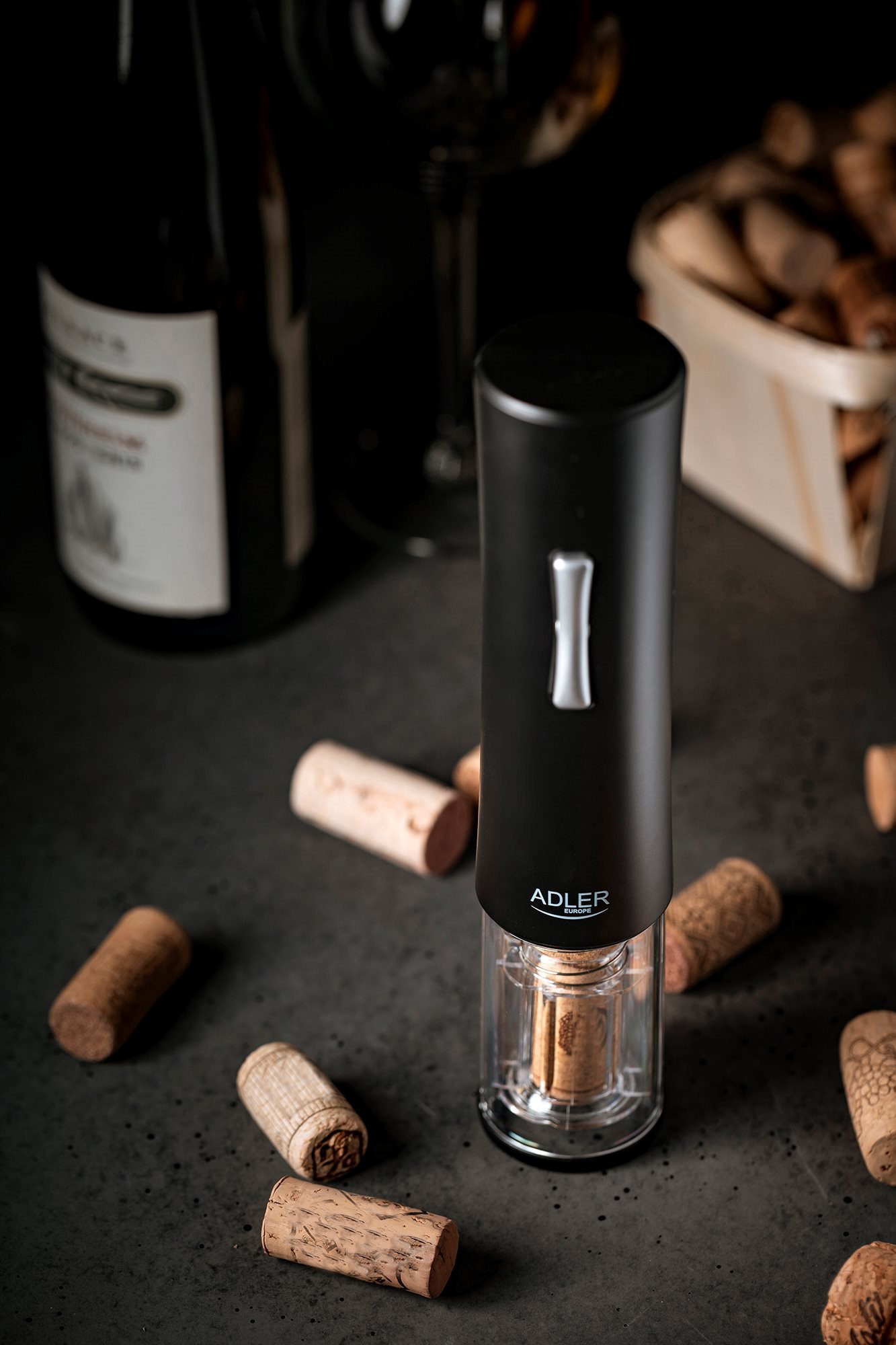 Adler -mærket elektrisk vinproptrækker har et stilfuldt og praktisk design, velegnet til både privat og professionel brug. Den er designet til hurtig og nem åbning af vinflasker med en propdiameter på 20-24 mm. Produktet kan bruges intuitivt og ubesværet med én hånd.