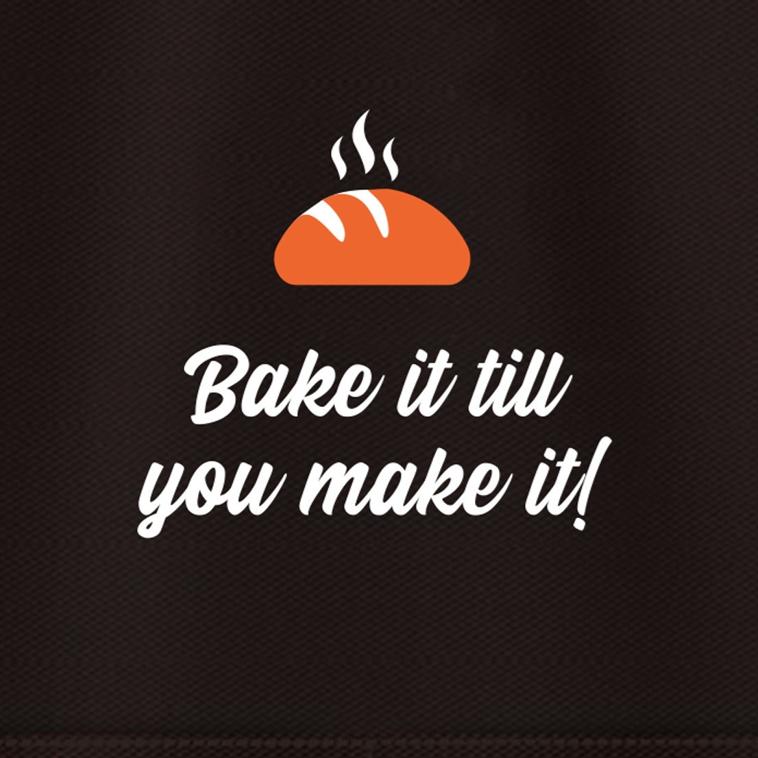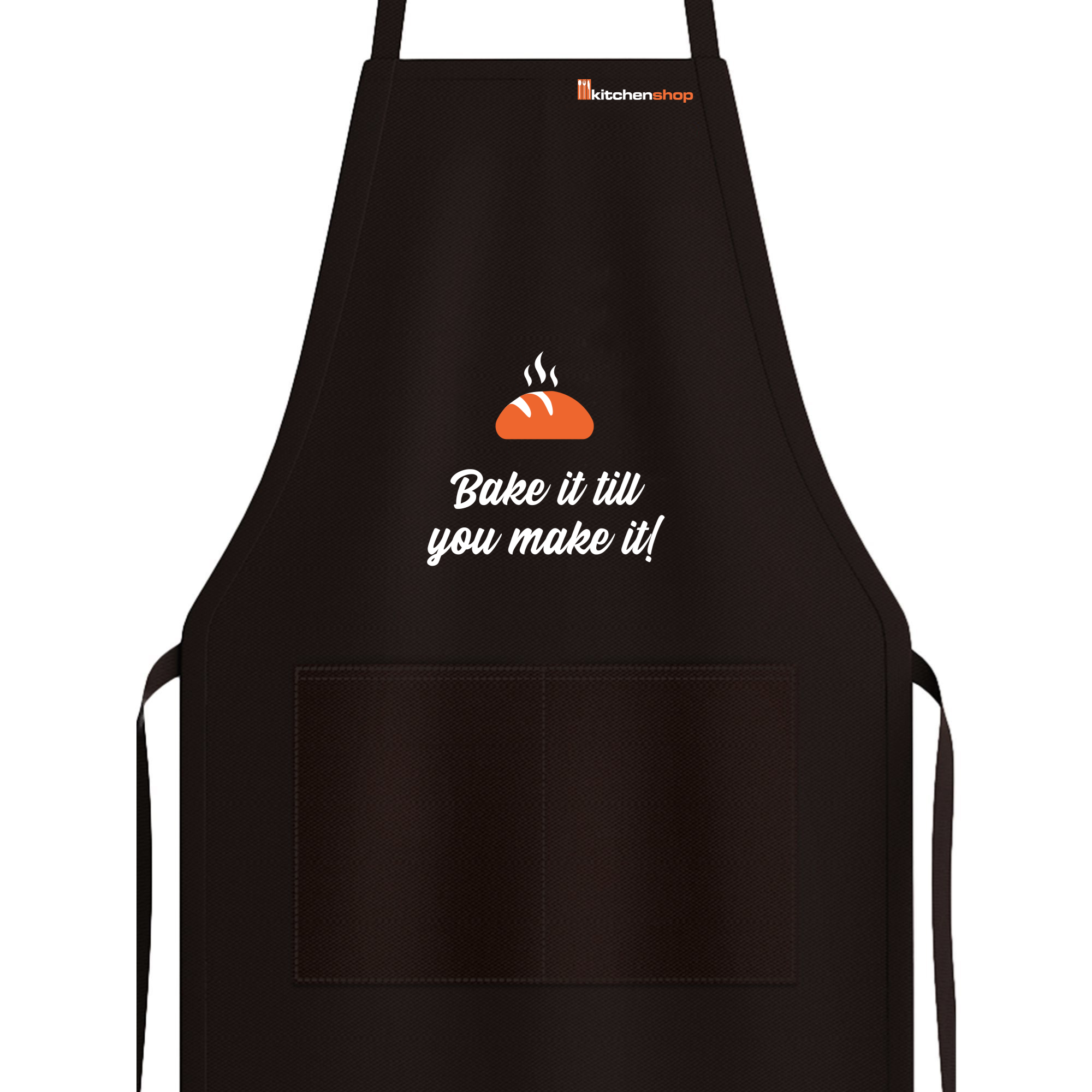 Beschriftet mit der Botschaft "Bake it till you make it!" auf schwarzem Hintergrund, oben verstellbar, sitzt die 90 cm x 70 cm große Schürze ordentlich auf Ihrer Taille und treibt Ihre Kreativität auf die nächste Stufe!