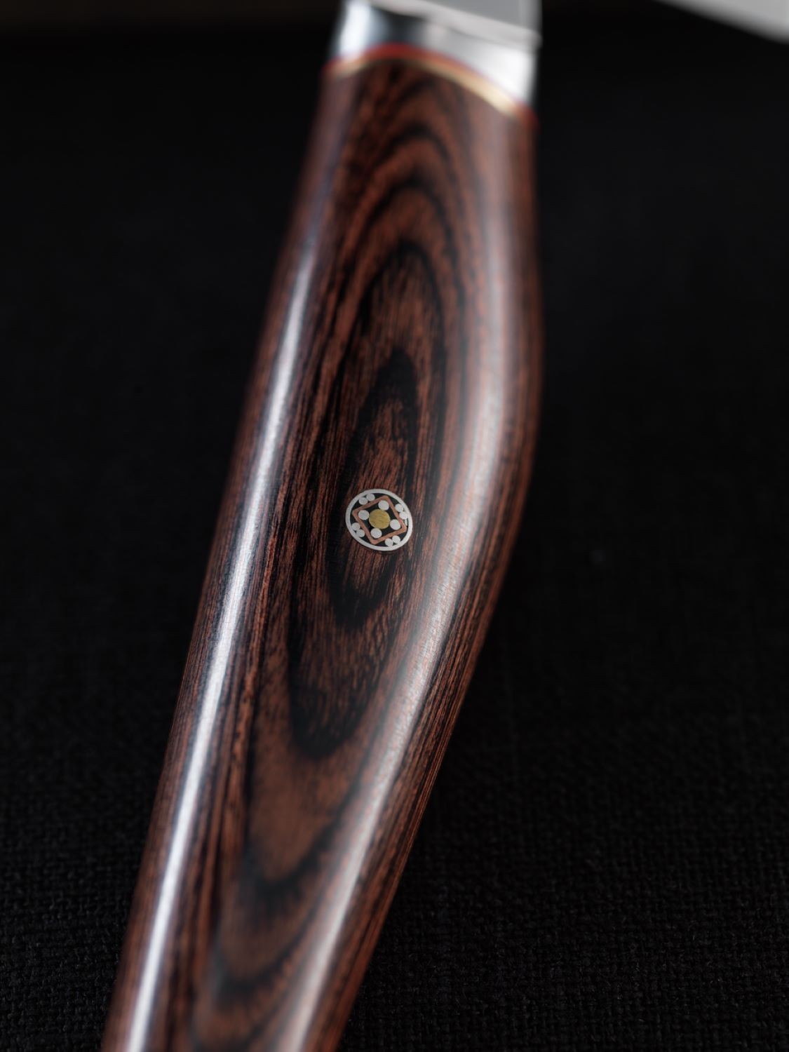 - Der Griff aus Pakka-Holz bietet Stabilität und perfekte Balance, unabhängig von der verwendeten Schneidtechnik.