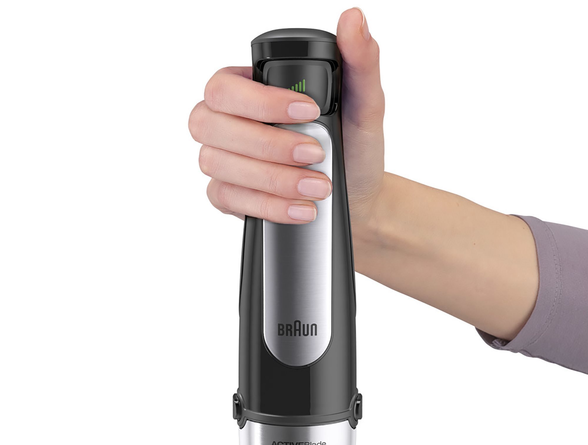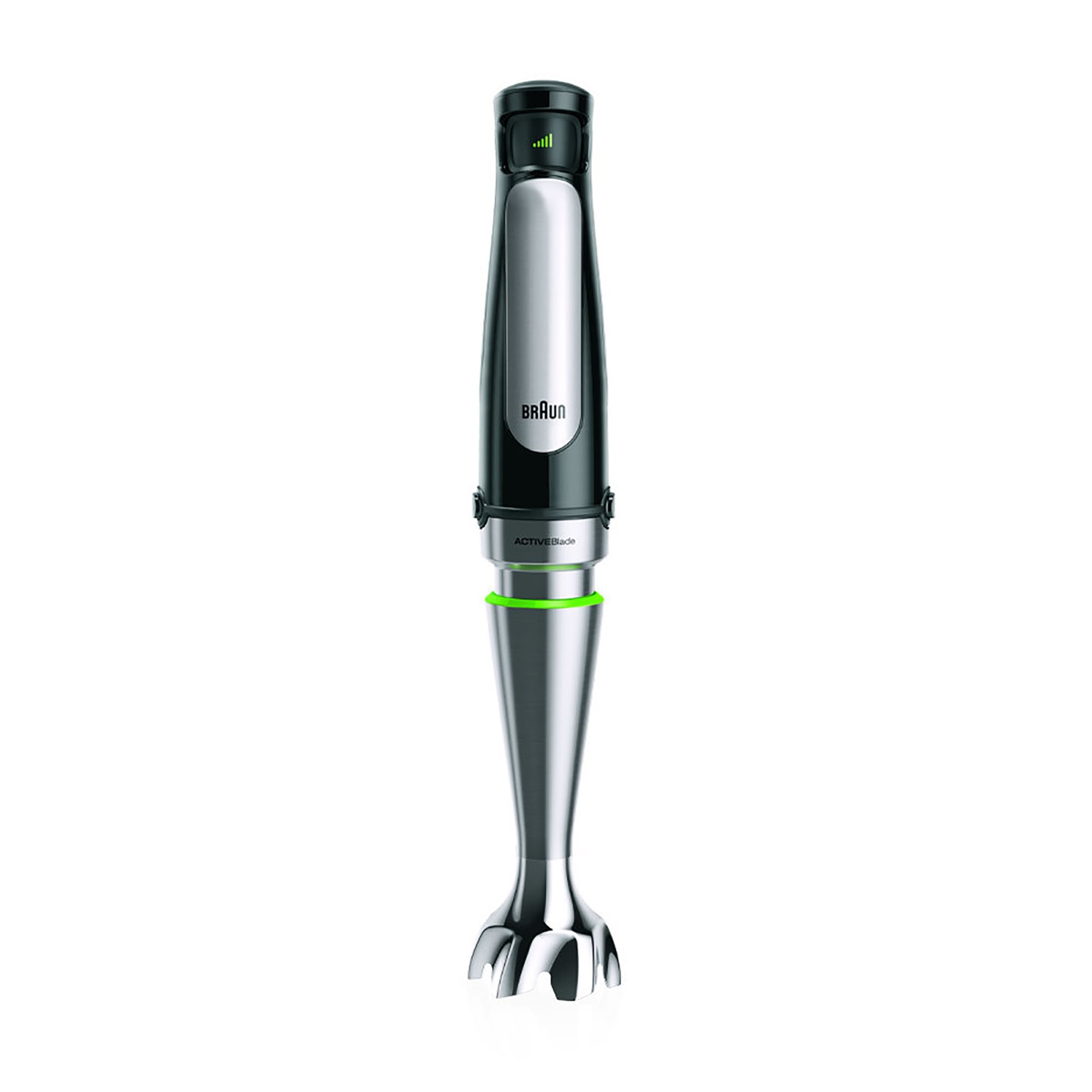 Σχεδιασμένο για να σας βοηθά να ετοιμάζετε υγιεινά σνακ με γρήγορο και εύκολο τρόπο, το μπλέντερ χειρός Braun MQ7025X παρέχεται με τη νέα τεχνολογία ActiveBlade . Ο πρωτοποριακός άξονας, κατασκευασμένος από ανοξείδωτο χάλυβα, θρυμματίζει ακόμα και τα πιο σκληρά τρόφιμα, με 40%* λιγότερη προσπάθεια και καλύπτοντας έως και 250% περισσότερη επιφάνεια κοπής.