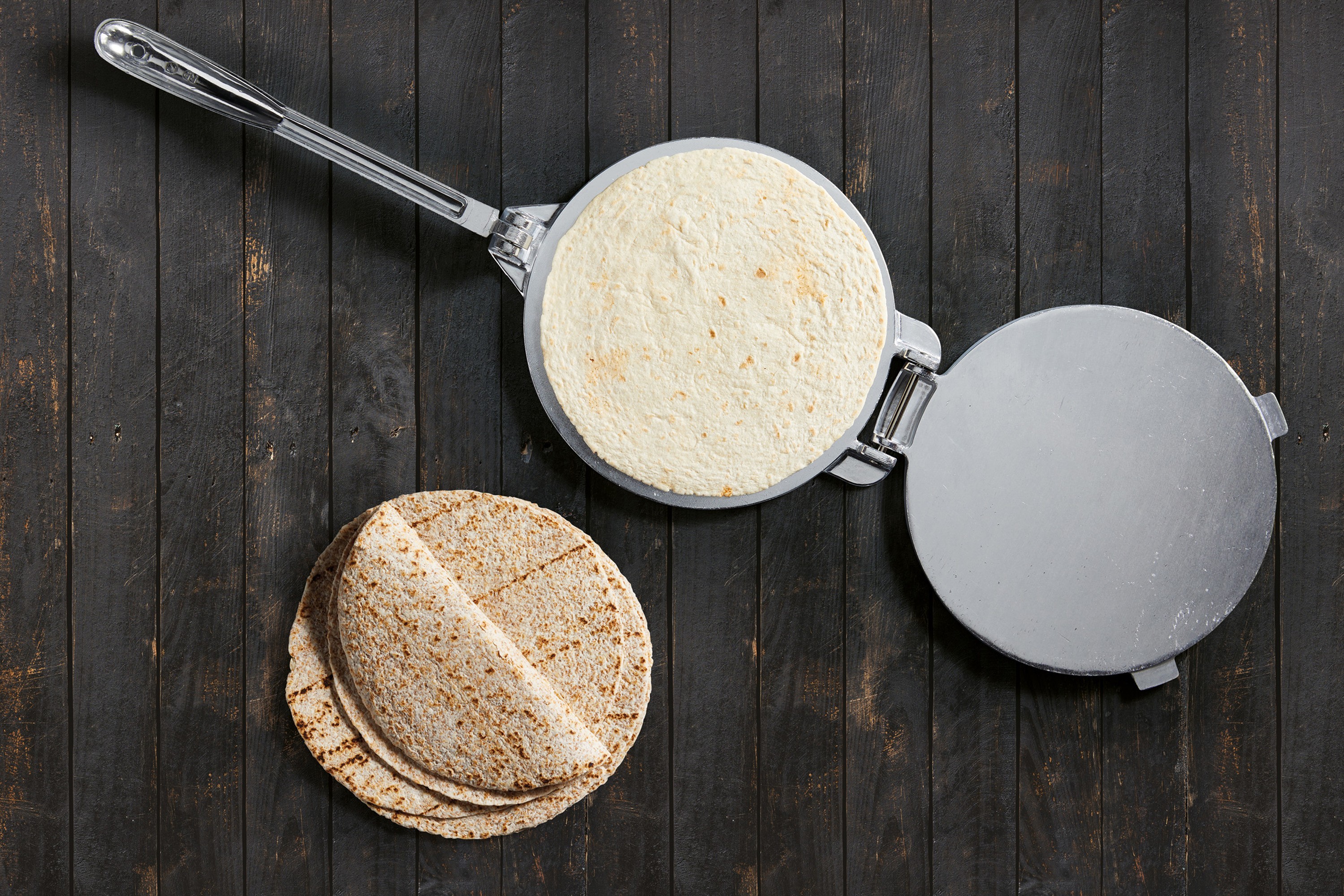 Η πρέσα είναι τέλεια για να ετοιμάσει είτε τορτίγιες είτε taco. Αυτό το προϊόν είναι επίσης πολύ εύκολο στη χρήση, αφού πρέπει απλώς να πιέσετε το μοχλό για να ισιώσει η ζύμη και να τη μετατρέψετε σε φύλλα έτοιμα για τηγάνισμα.