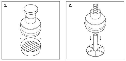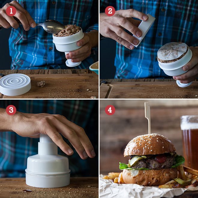 Ένα άλλο πλεονέκτημα συνίσταται στο σύστημα σχηματισμού μπιφτέκι, το οποίο είναι απλό και εύκολο στη χρήση. Τοποθετήστε ένα δίσκο κεριού στη συσκευή, στη συνέχεια προσθέστε τον κιμά, καρυκευμένο στη γεύση, αναμειγνύεται με βραστά και ψιλοκομμένα λαχανικά, σύμφωνα με τις προτιμήσεις, και βάλτε το δεύτερο δίσκο κεριού στην κορυφή. Τοποθετήστε το καπάκι πάνω από όλα αυτά και πιέστε.