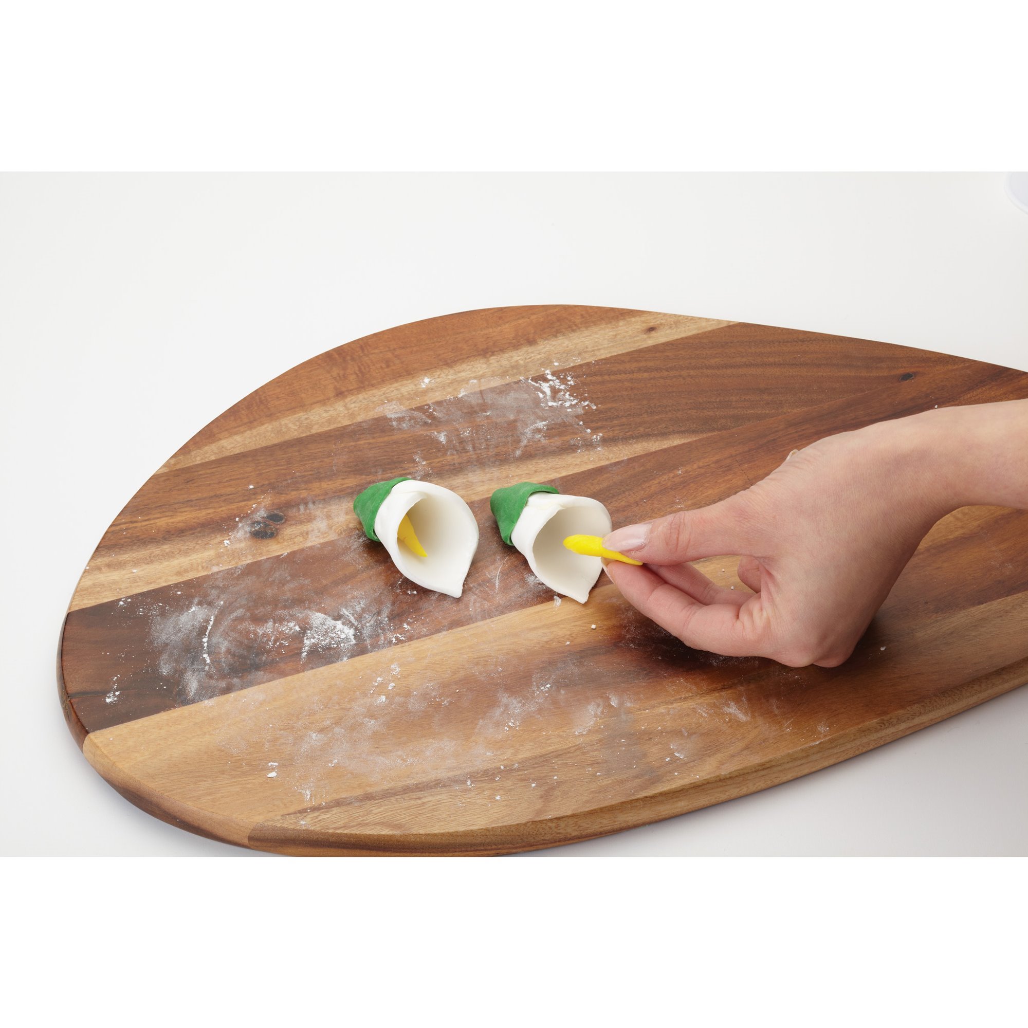 Με αυτό το σετ, μπορείτε να δώσετε μια επαγγελματική ματιά στα κέικ δημιουργώντας τέλειες διακοσμήσεις αμυγδάλου ή φοντύ σε σχήμα λουλουδιών κρίνο.