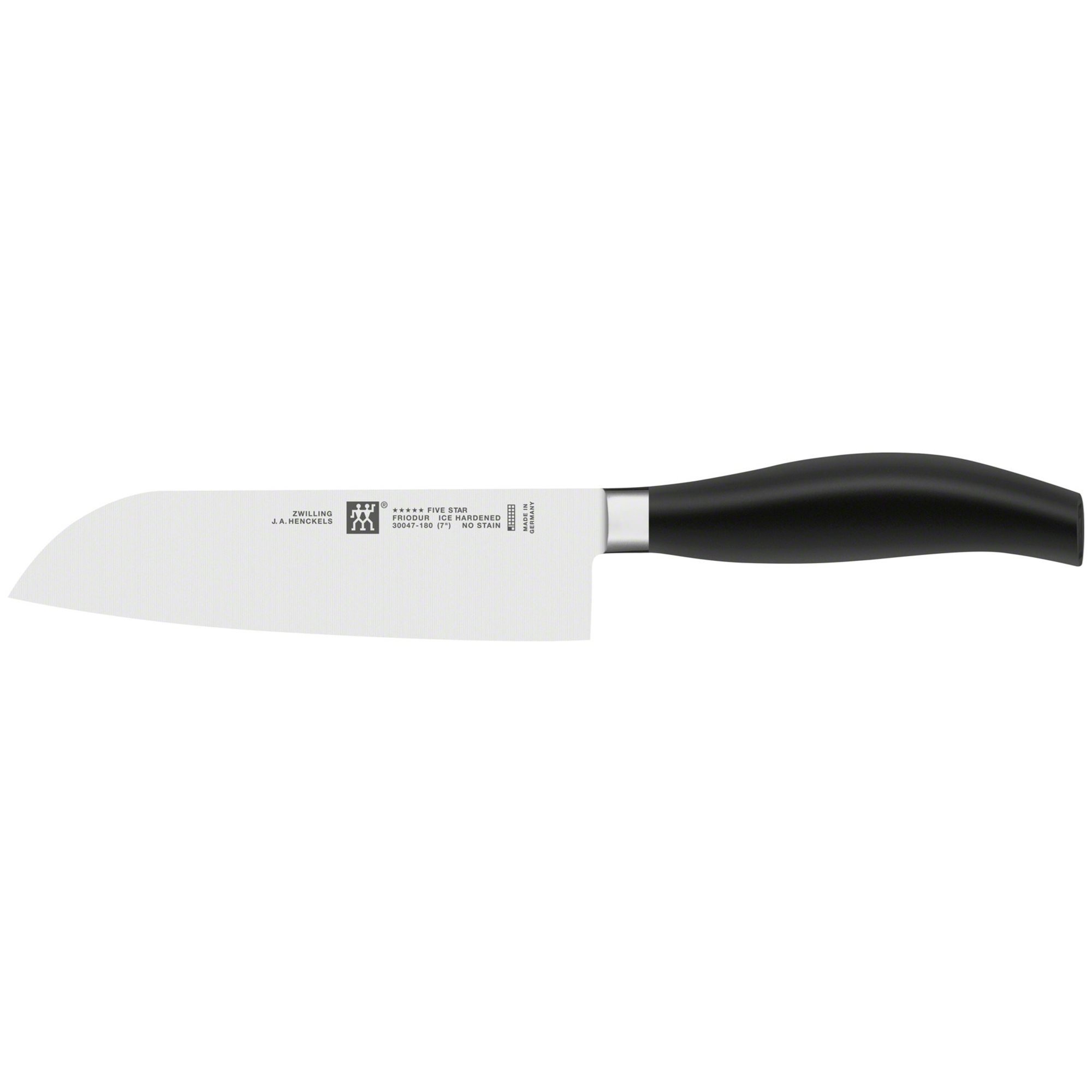 Σετ μαχαιριών κουζίνας, 2 τεμάχια,μάρκα Zwilling, αποτελούμενη από: - μαχαίρι απολέπισης, 10 εκ.- Μαχαίρι Σαντόκου, 18 εκ. Τα μαχαίρια είναι κατασκευασμένα από ανοξείδωτο χάλυβα ανθεκτικό στη διάβρωση και τους κραδασμούς. Άλλα χαρακτηριστικά: - Η λεπίδα FRIODUR® σκληρυμένη με κρυογενική διαδικασία. - Η SIGMAFORGE® κατασκευή - ένα κομμάτι σφυρηλημένο μαχαίρι, τέλεια γεωμετρία, υψηλή ακρίβεια, βελτιωμένη σταθερότητα λεπίδας. - Λεπίδα δοκιμασμένη με έλεγχο με λέιζερ. - Προστατευτικός προφυλακτήρας μεταξύ λεπίδας και λαβής. - Λαβή πολυπροπυλενίου, αυτόκλειστη. - Ανθεκτικό στη σκουριά, αδιάβροχο.