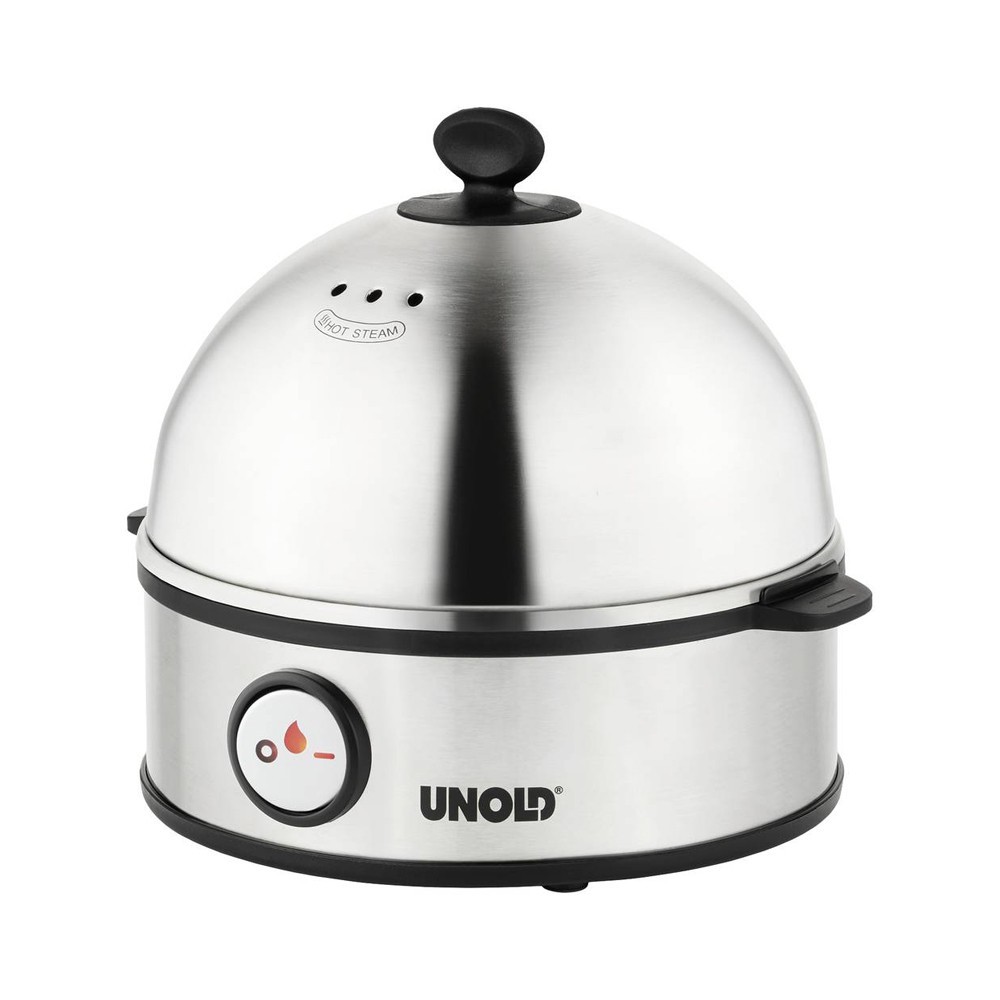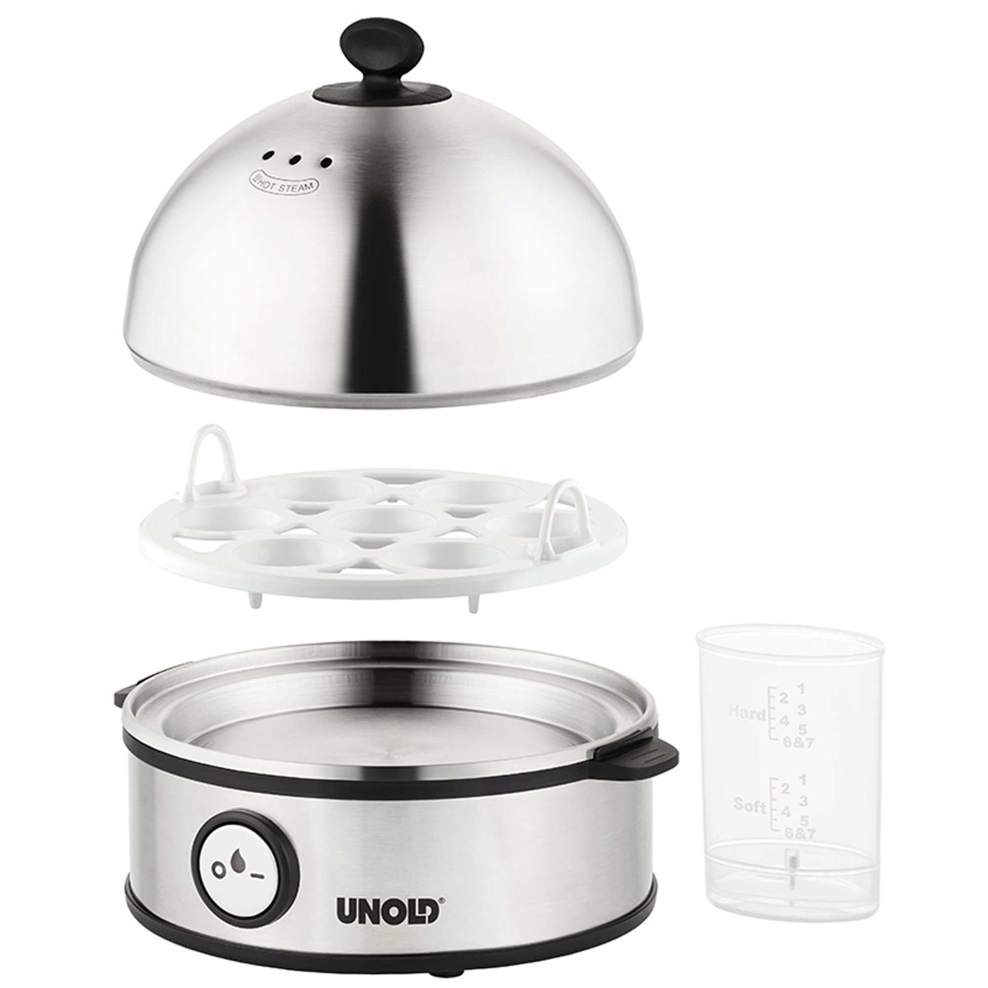 Με αυτήν τη συσκευή για βράσιμο αυγών από Unold, από ανοξείδωτο ατσάλι ισχύος 360 W, μπορείτε να βράσετε έως και 7 αυγά.