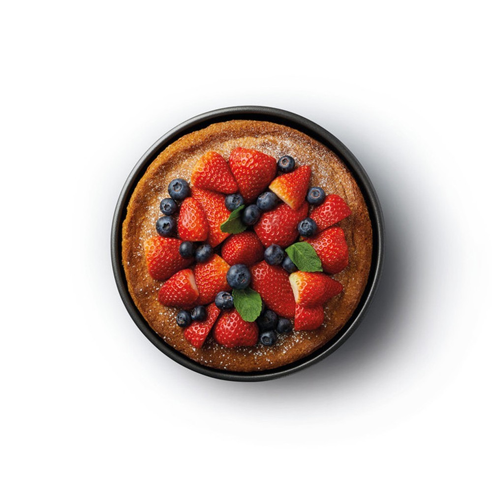 Όντας κατασκευασμένο από ανθεκτικό χάλυβα και πάχους 1 mm,εφοδιασμένο με διπλό αντι-συγκολλητικό στρώμα που επιτρέπει ομοιόμορφο ψήσιμο, χωρίς συγκόλληση, και επακόλουθη εύκολη αποκόλληση όσων έχετε ετοιμάσει, ο στρογγυλός δίσκος με διάμετρο 18 cm με αφαιρούμενη βάση είναι καλά "εκπαιδευμένος" για έντονη χρήση, απαντώντας με επιτυχία σε όλες τις προκλήσεις σας στην κουζίνα.
