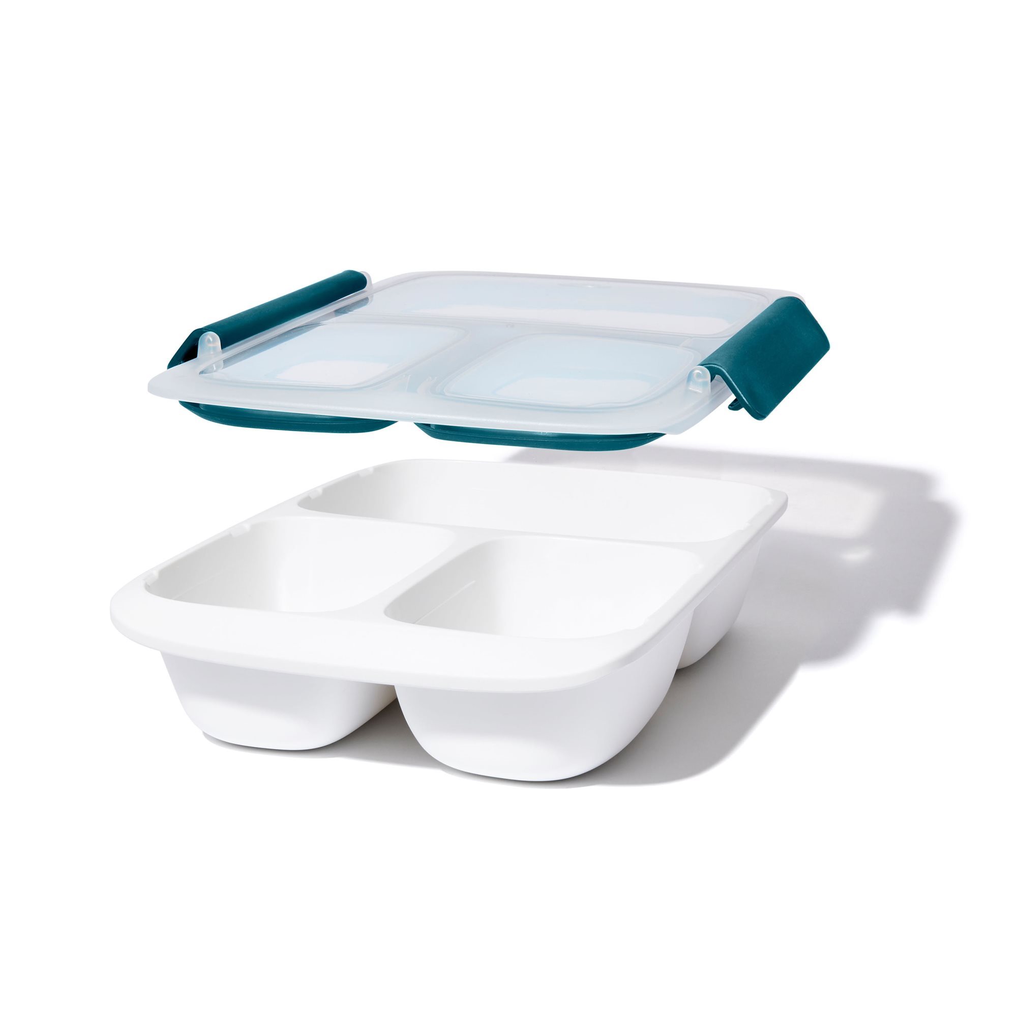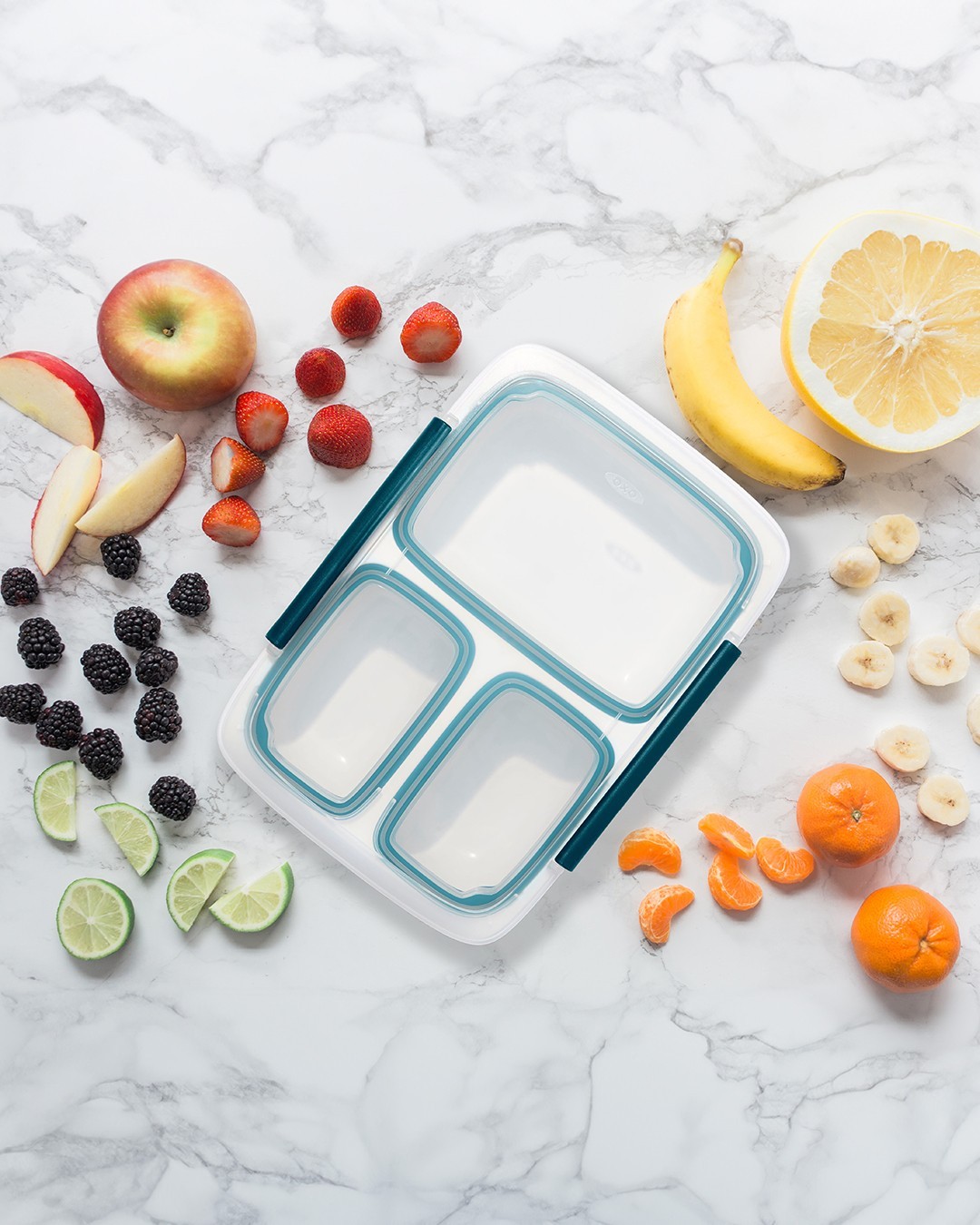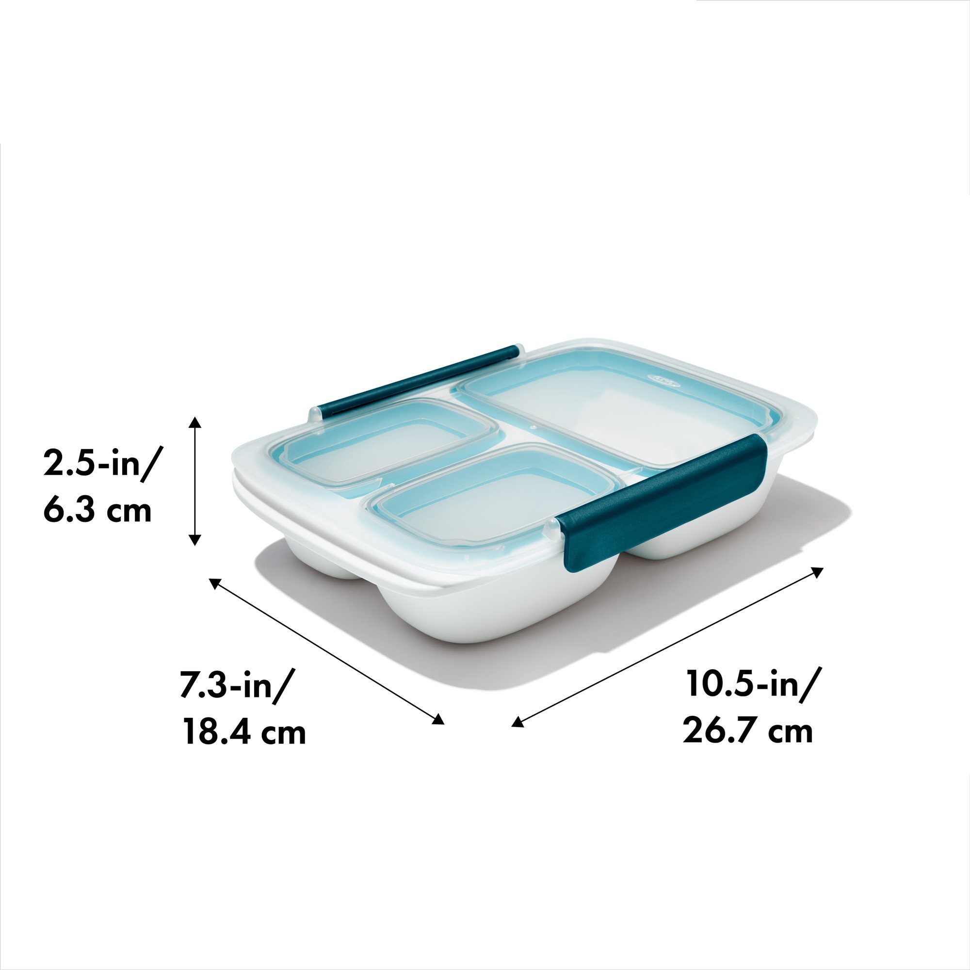 Το διαιρεμένο δοχείο τροφίμων OXO Prep & Go έχει 3 ξεχωριστές θήκες σε ένα δοχείο. Χρησιμοποιήστε το δοχείο φαγητού που μπορεί να είναι χρήσιμο για τον έλεγχο των μερίδων και την προετοιμασία γευμάτων τύπου μπέντο. Γεμίστε τη μια θήκη με ελληνικό γιαούρτι και την άλλη με μούρα και δημητριακά ή χρησιμοποιήστε τη για σούπα και μπισκότα, ή ψητό κοτόπουλο και λαχανικά κ.λπ.