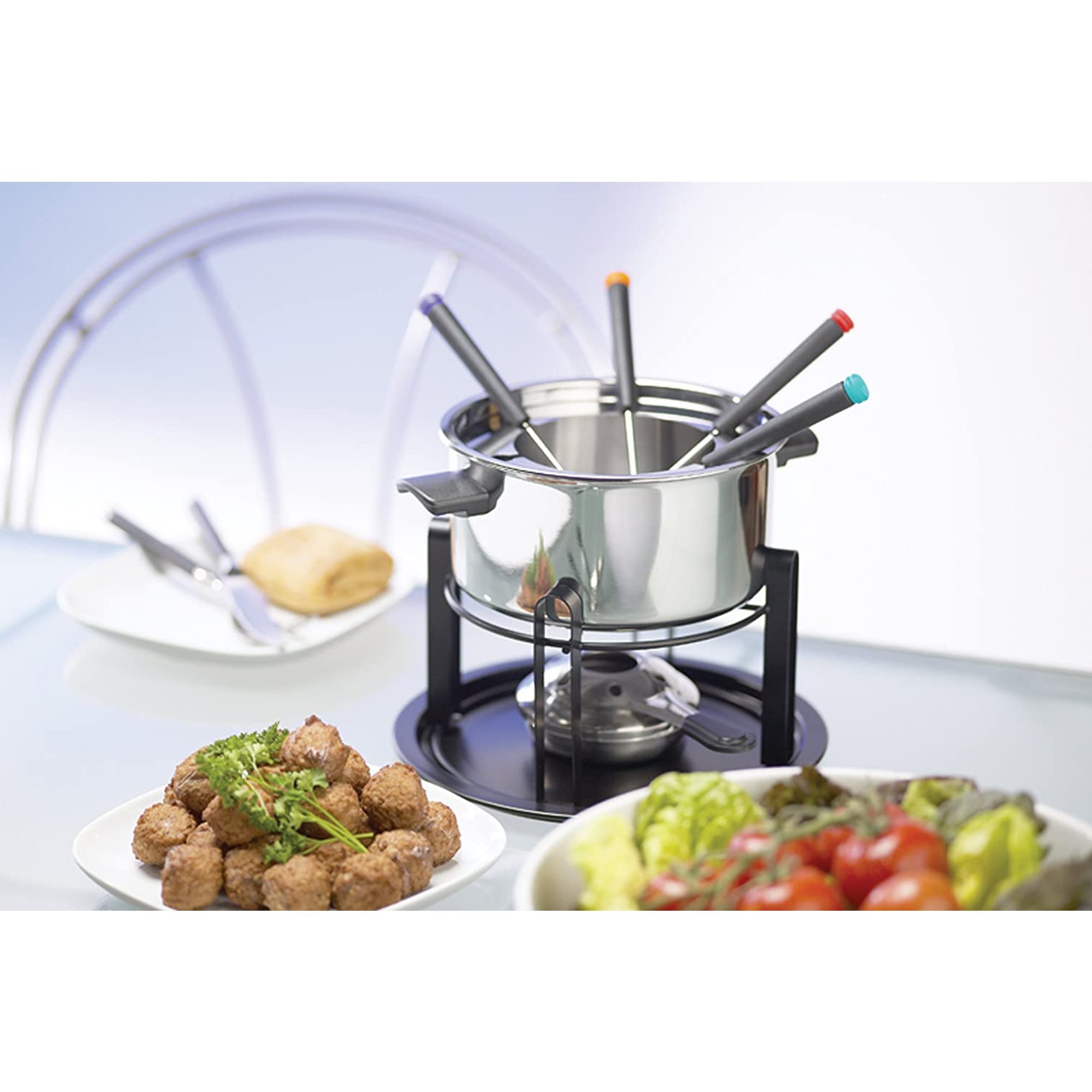 Fondue forks and the vessel can be cleaned in dishwasher.