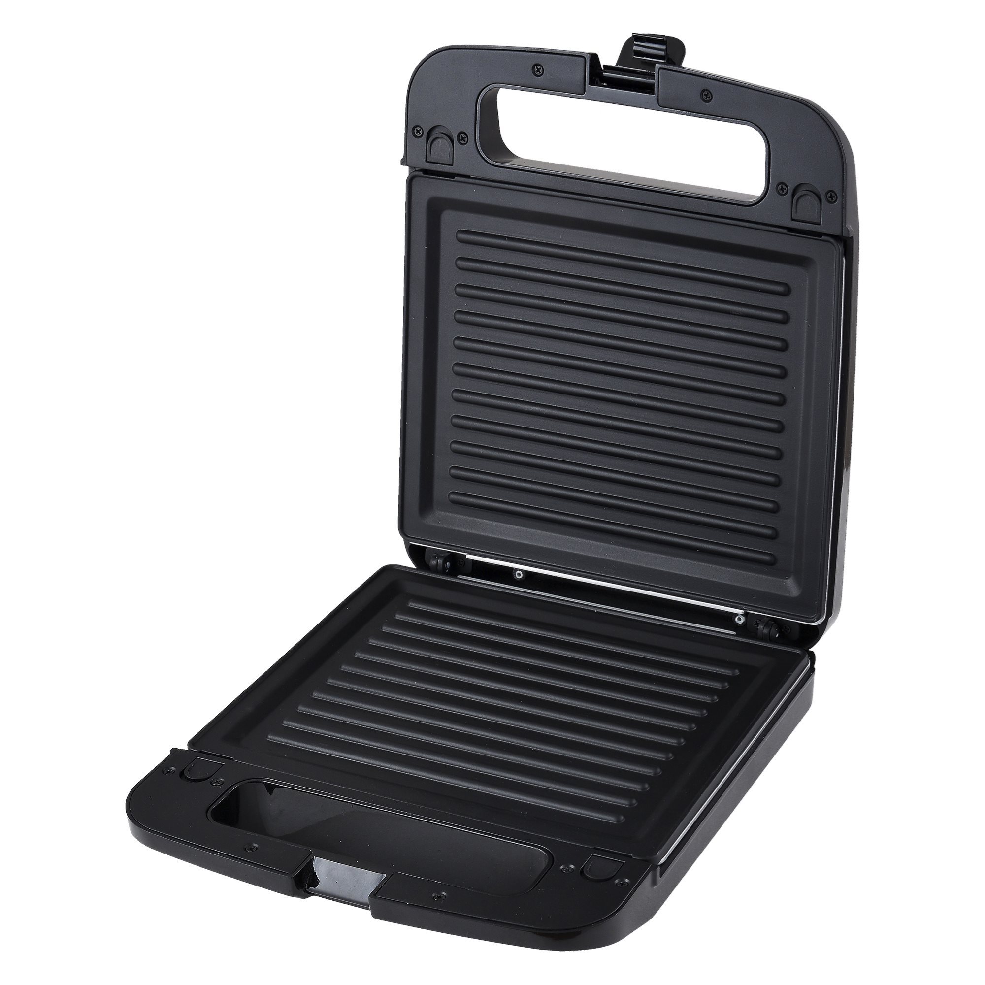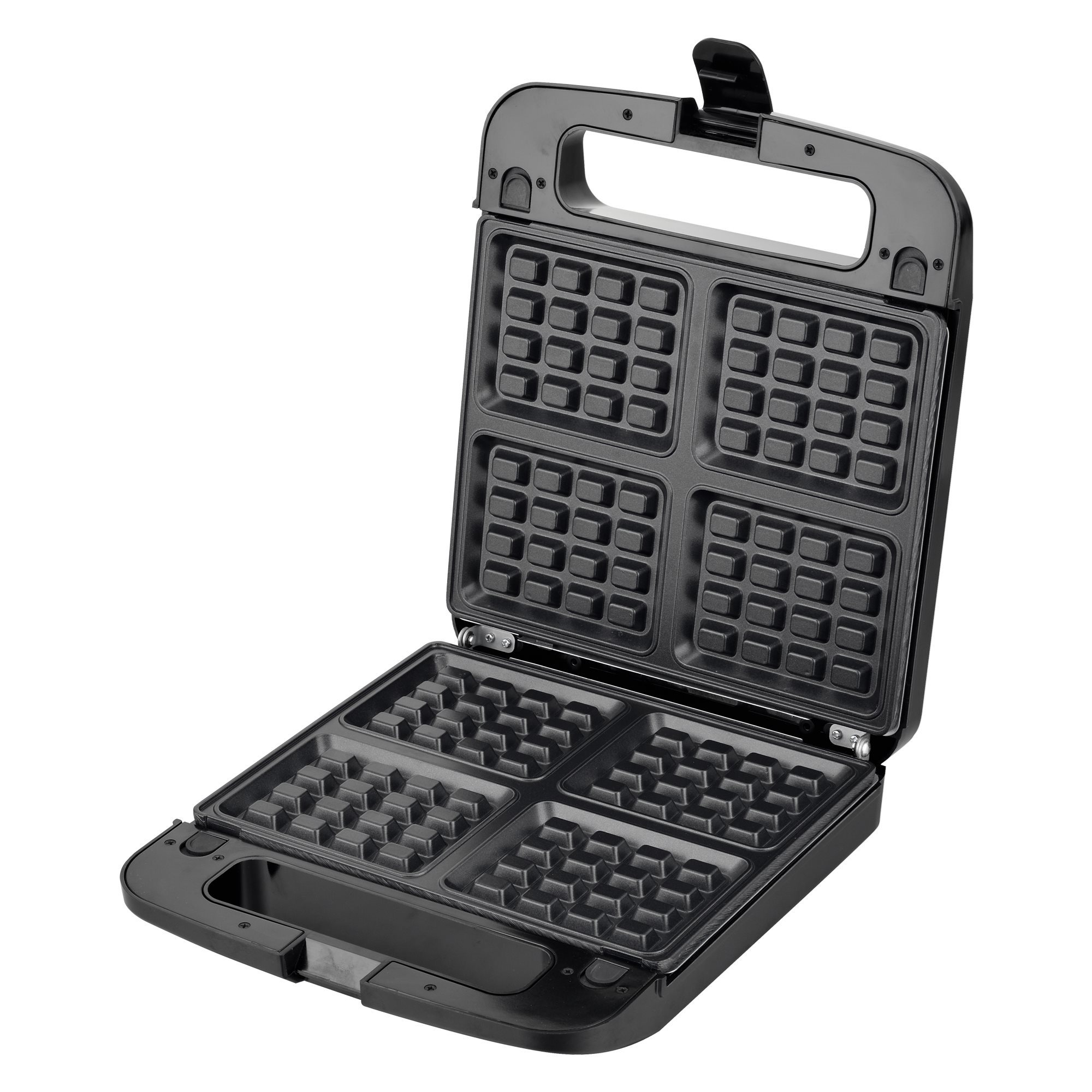 The 2-in-1 sandwich maker is a practical way to prepare a satiating breakfast within minutes. The appliance has 2 sets of non-stick detachable plate tiles sized 25 x 21 cm: grill or waffles.