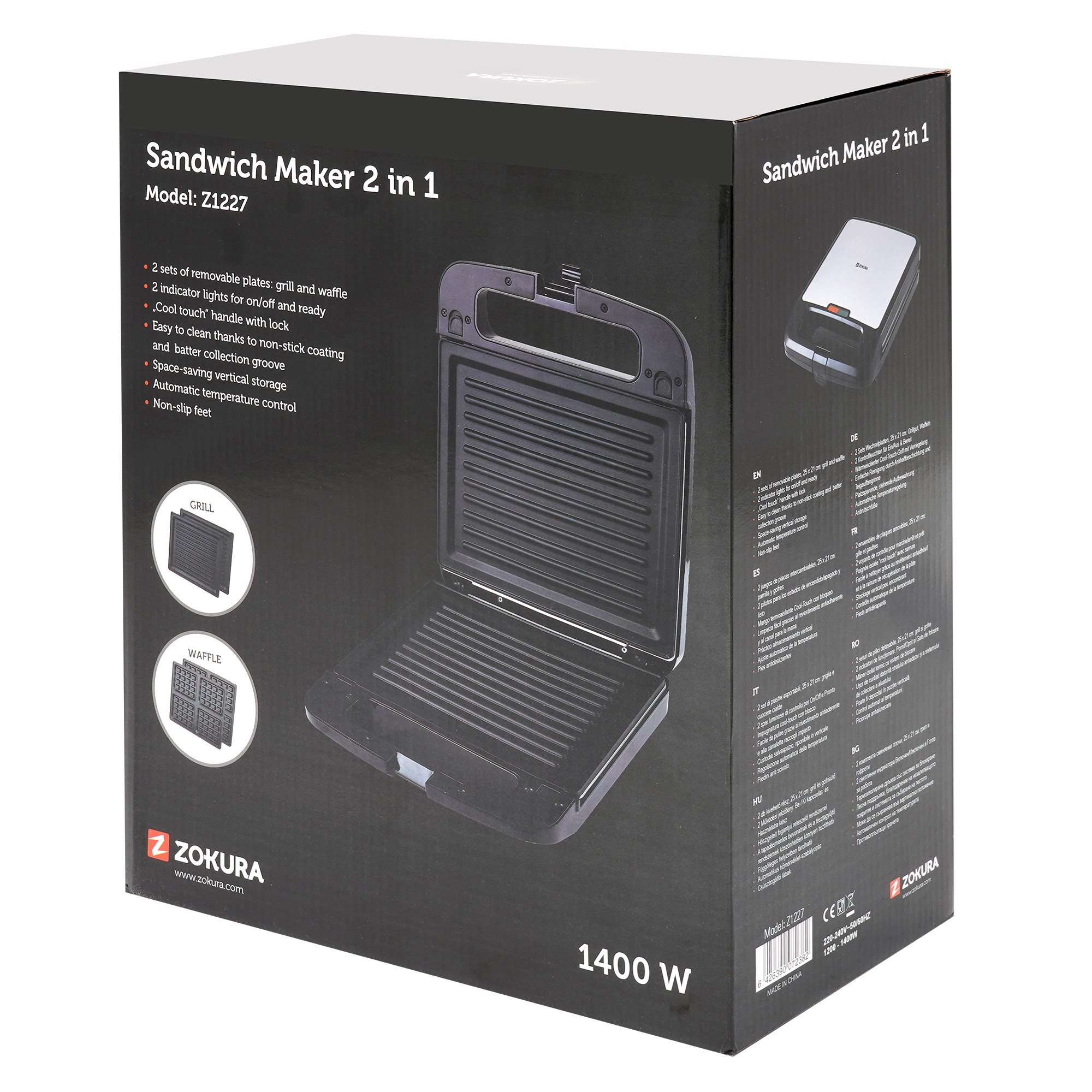 Would you like to serve a panini sandwich or maybe some delicious waffles for breakfast? The combinations are countless when you have at your disposal this 2-in-1 sandwich maker, produced by Zokura.