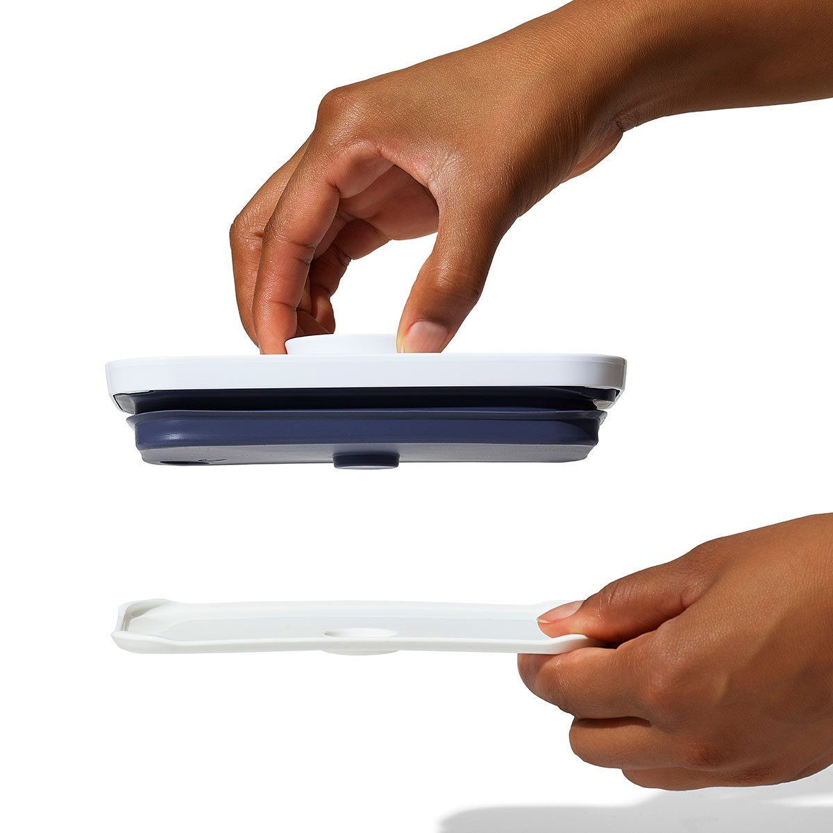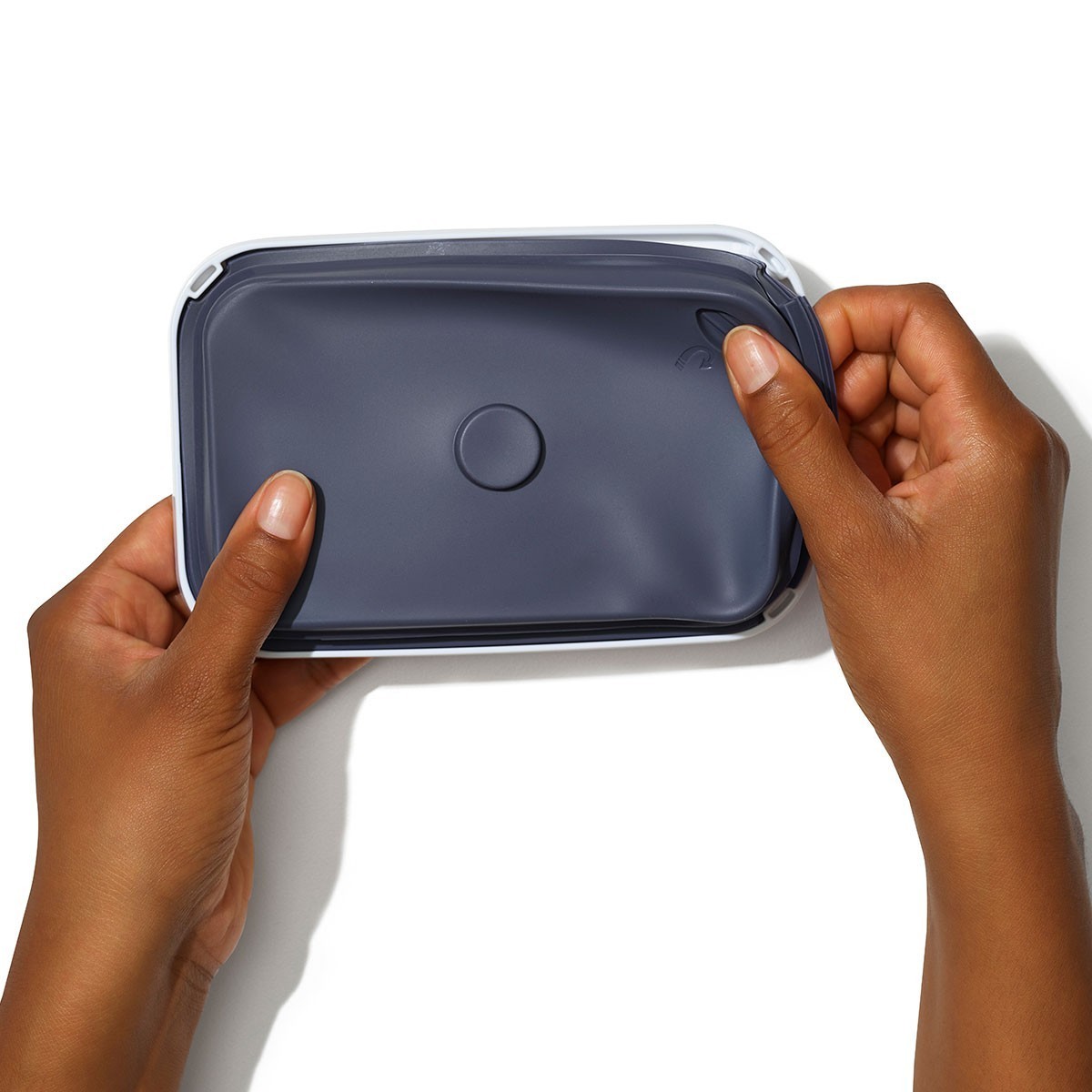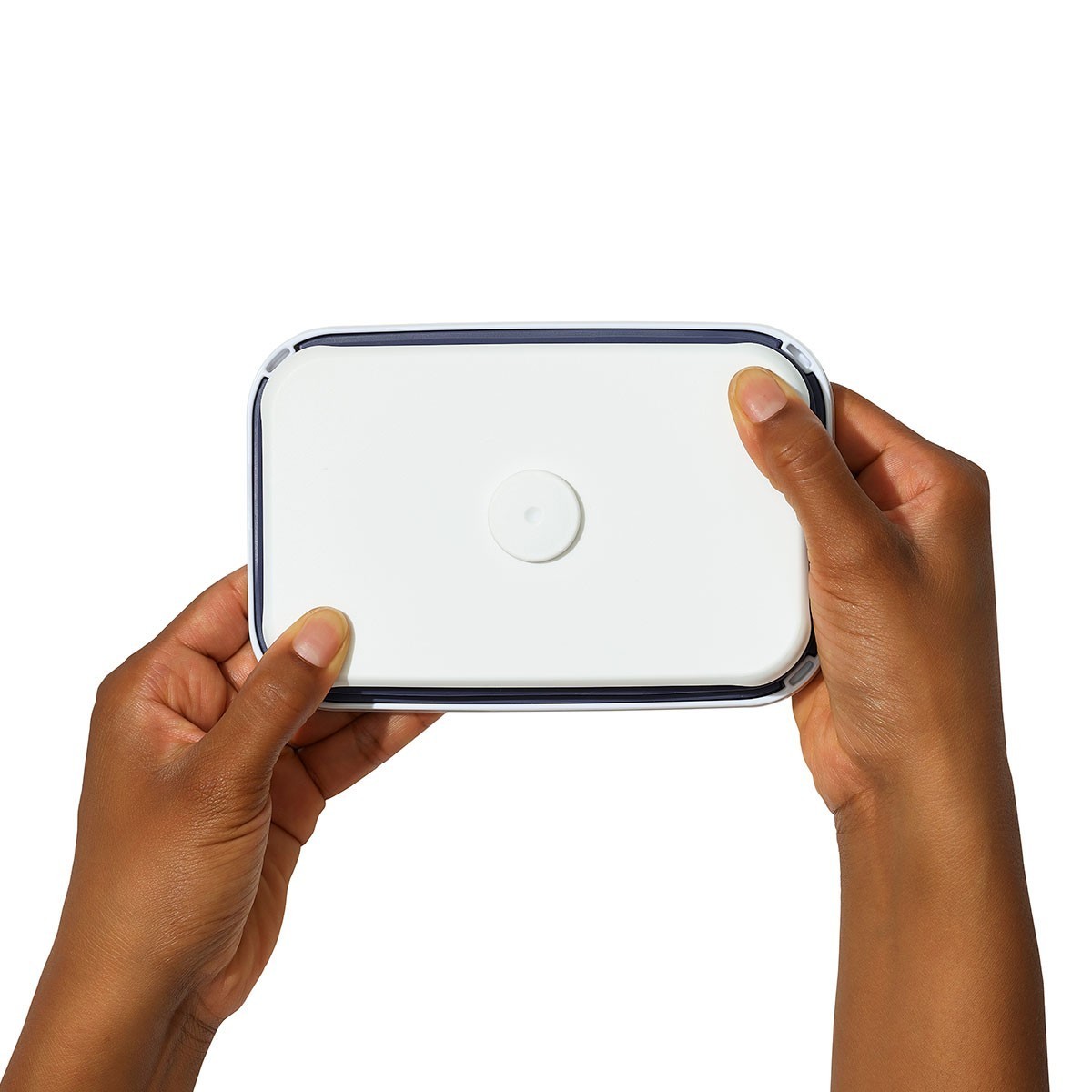 The button serves as a handle for the lid