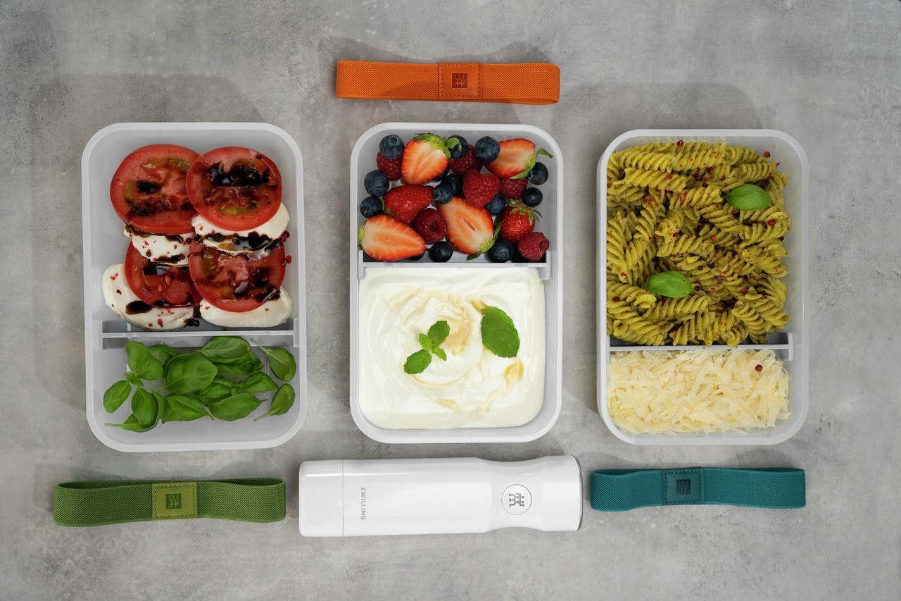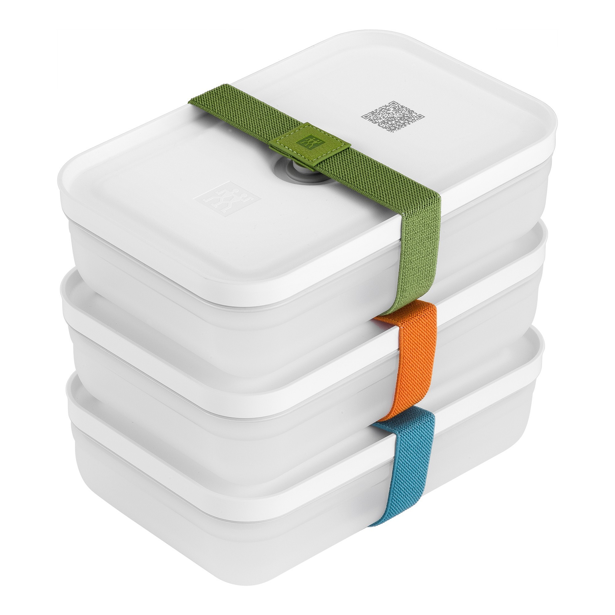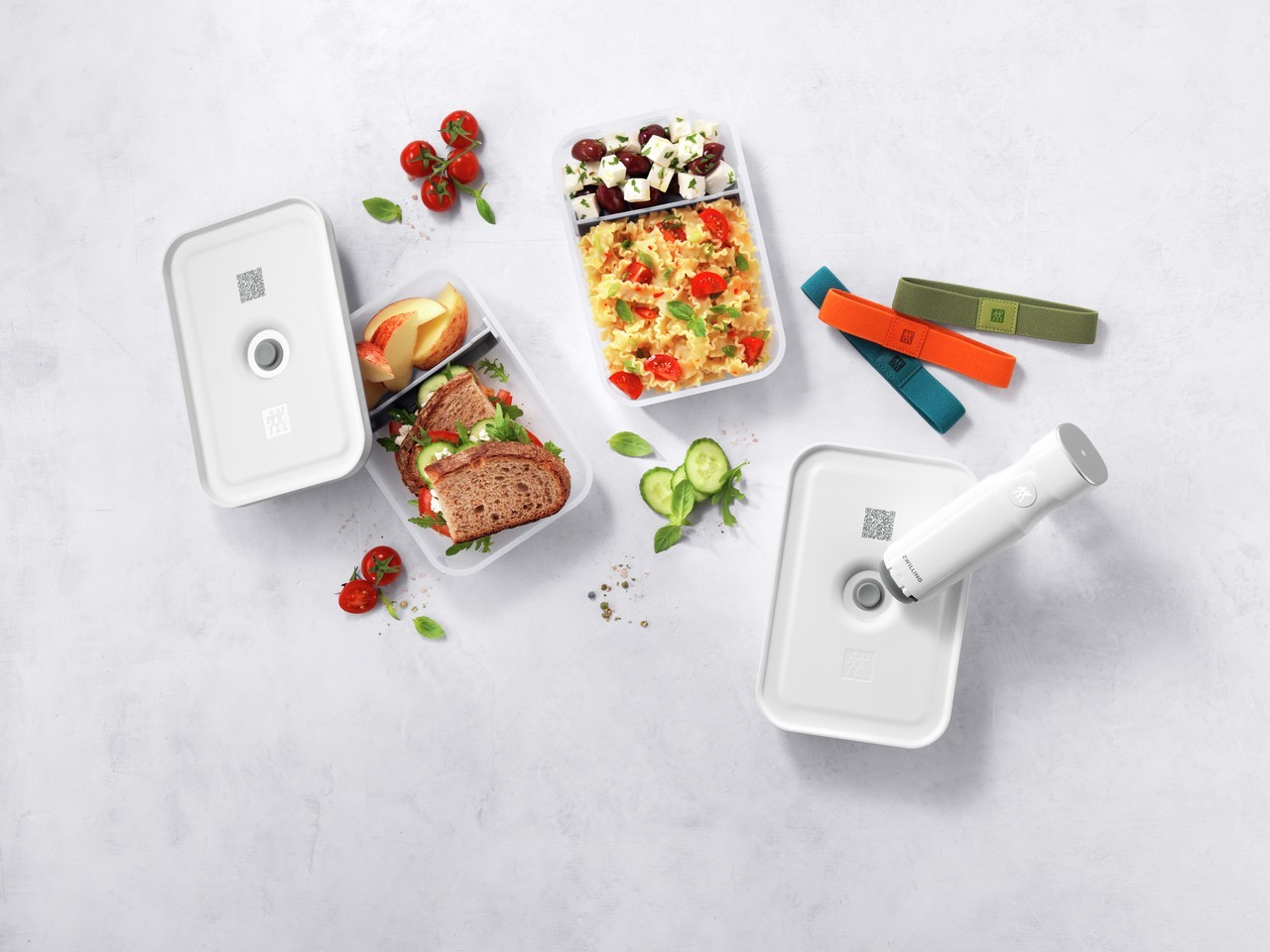 More long-lasting freshness for at home and on the go: this is what the 6-piece ZWILLING FRESH & SAVE lunch box set offers you. This includes three vacuum lunch boxes, size L and three elastic bands in trendy colors.