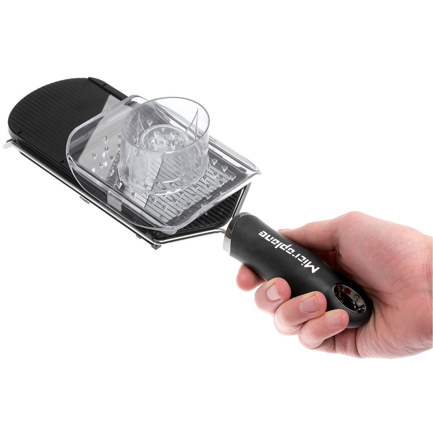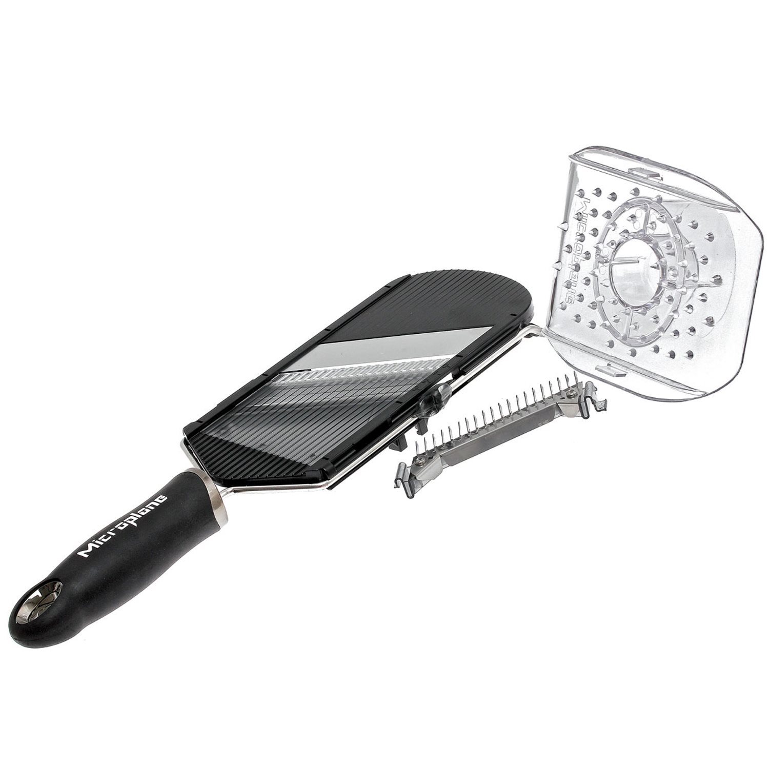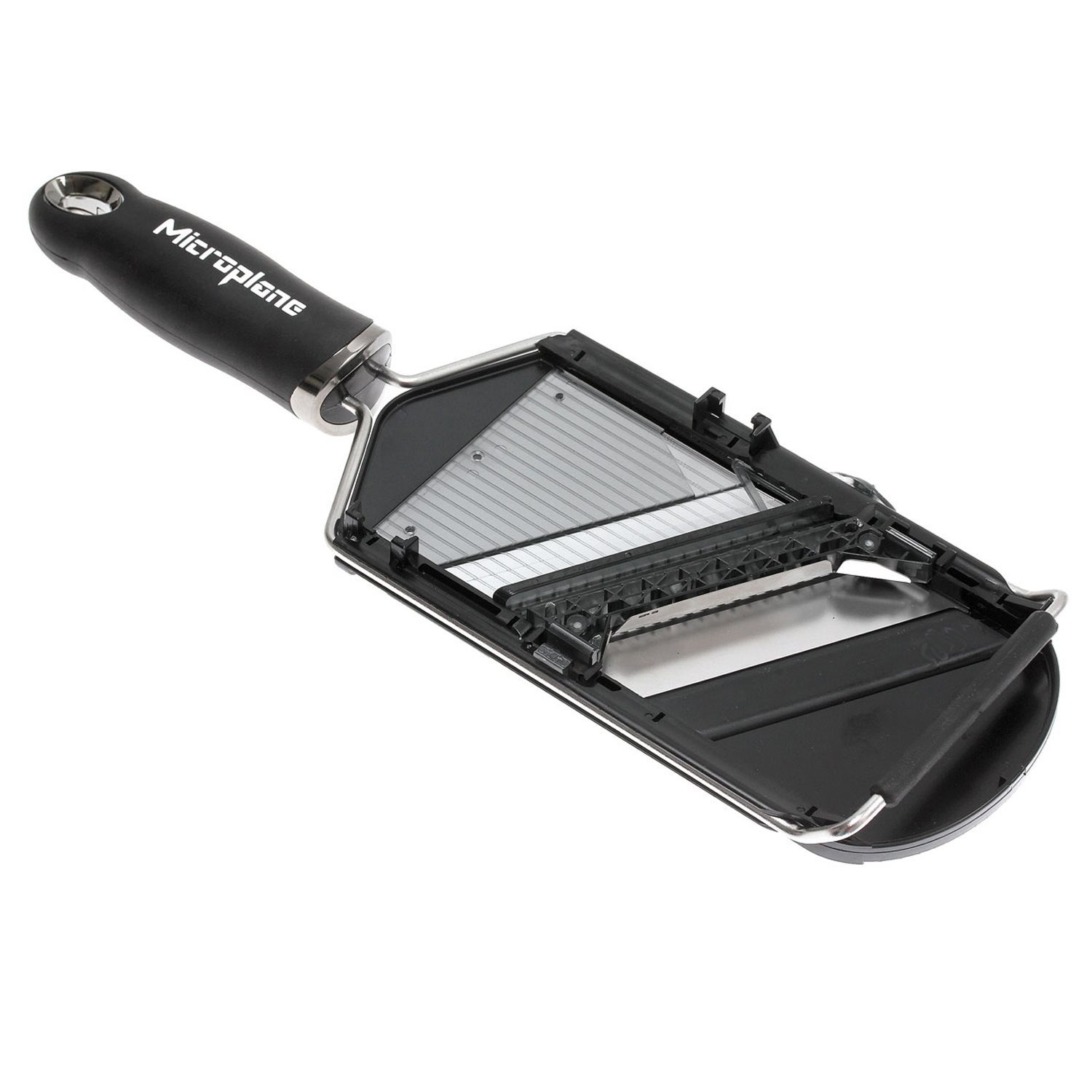 Adjustable slicing device, from the "Specialty" range, Microplane brand, measuring 33 x 11.4 x 6.6 cm, with blades made of stainless steel sharpened by a special photo etching process.