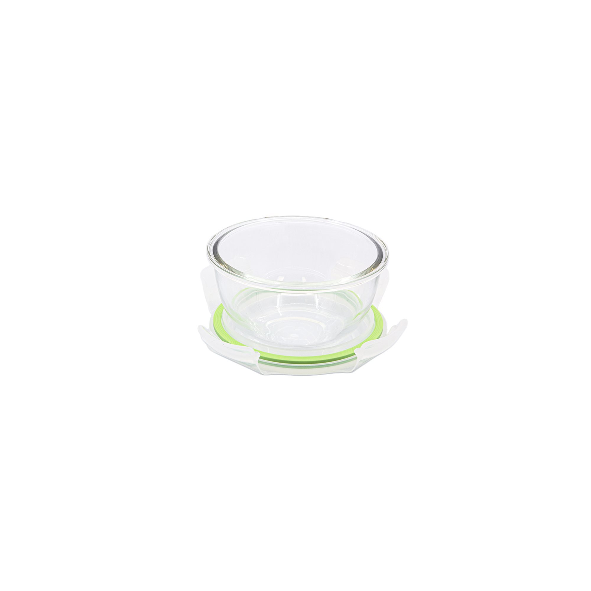 Airtight bowl with lid, produced by GlassLock, capacity of 380 ml, diameter of 12 cm, height of 8.1 cm, made of special glass which is resistant to temperatures between -20 and +120°C.
