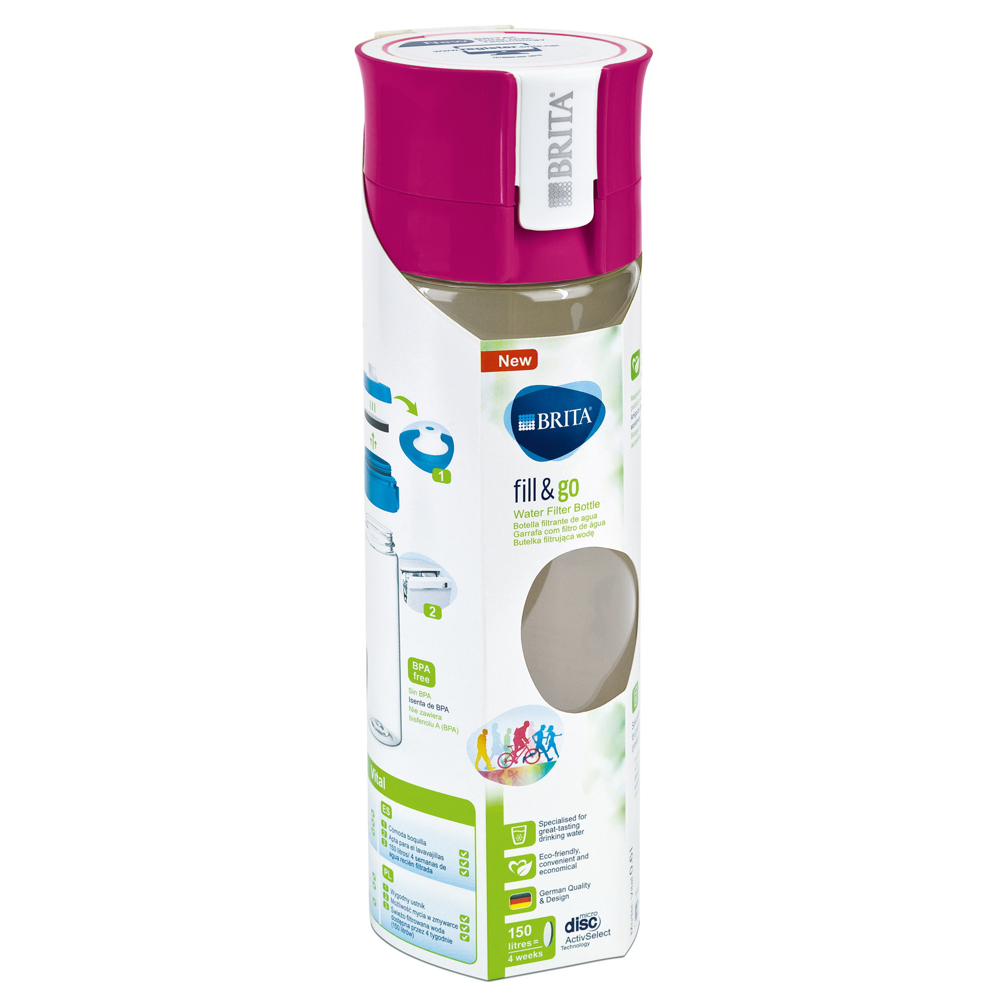 In other words, Brita's advanced filtration technology is involved, so you have the freedom to take the bottle with you anywhere and anytime: refill it with drinking water (tap water, for example) that you drink freshly filtered.