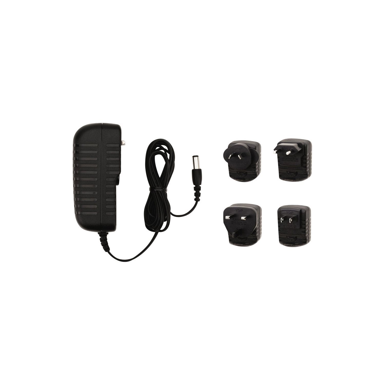 The product contains: a main component to which one of the 4 available adapters gets attached to plug the trash can into the power outlet, wherever you are.