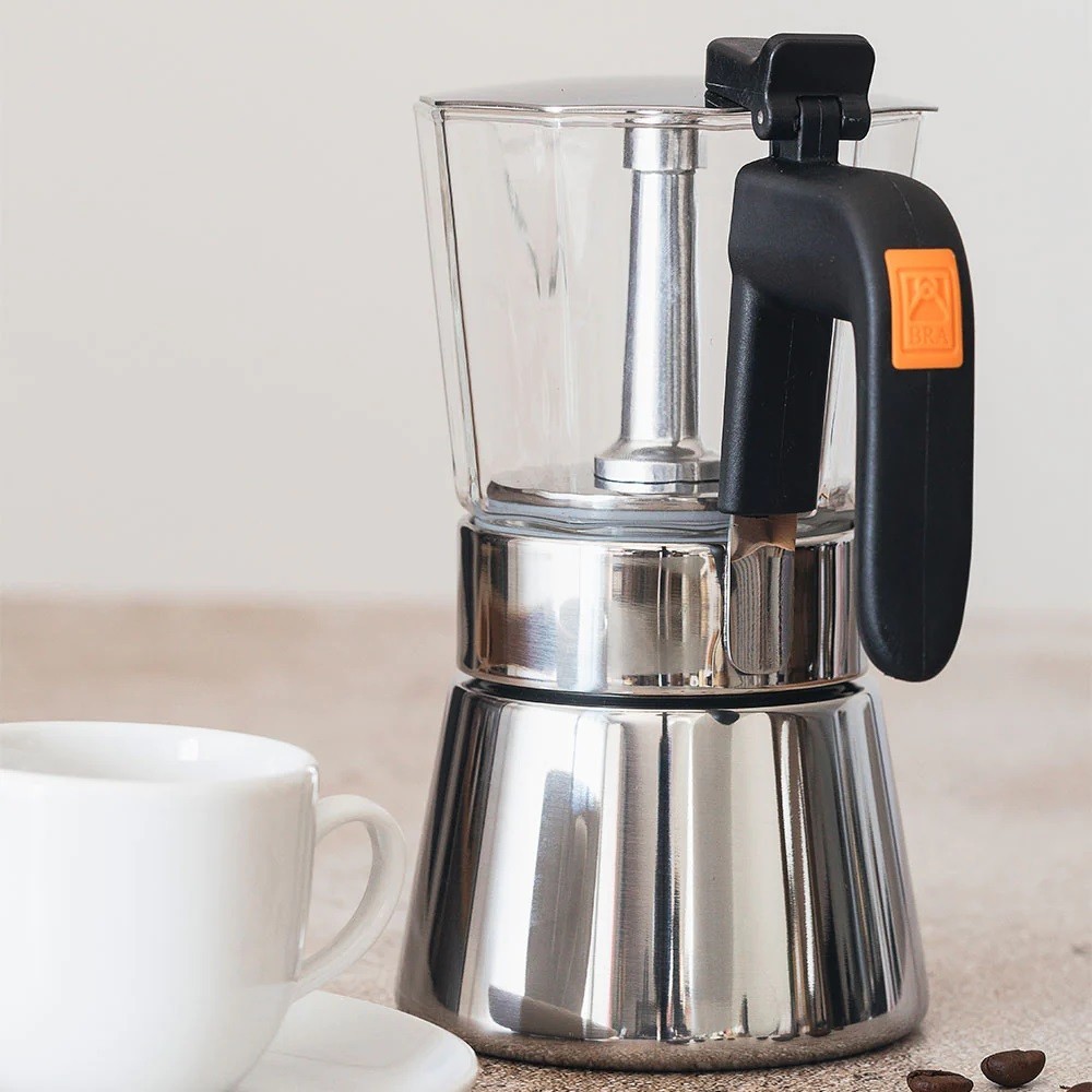 The coffee maker "Flavour Crystal" is the perfect coffee maker from the BRA brand, for always preparing excellent coffee with superb aroma and freshness. It combines classic Italian design with a transparent upper part made of borosilicate glass, allowing you to observe the coffee at any moment without opening the coffee maker.