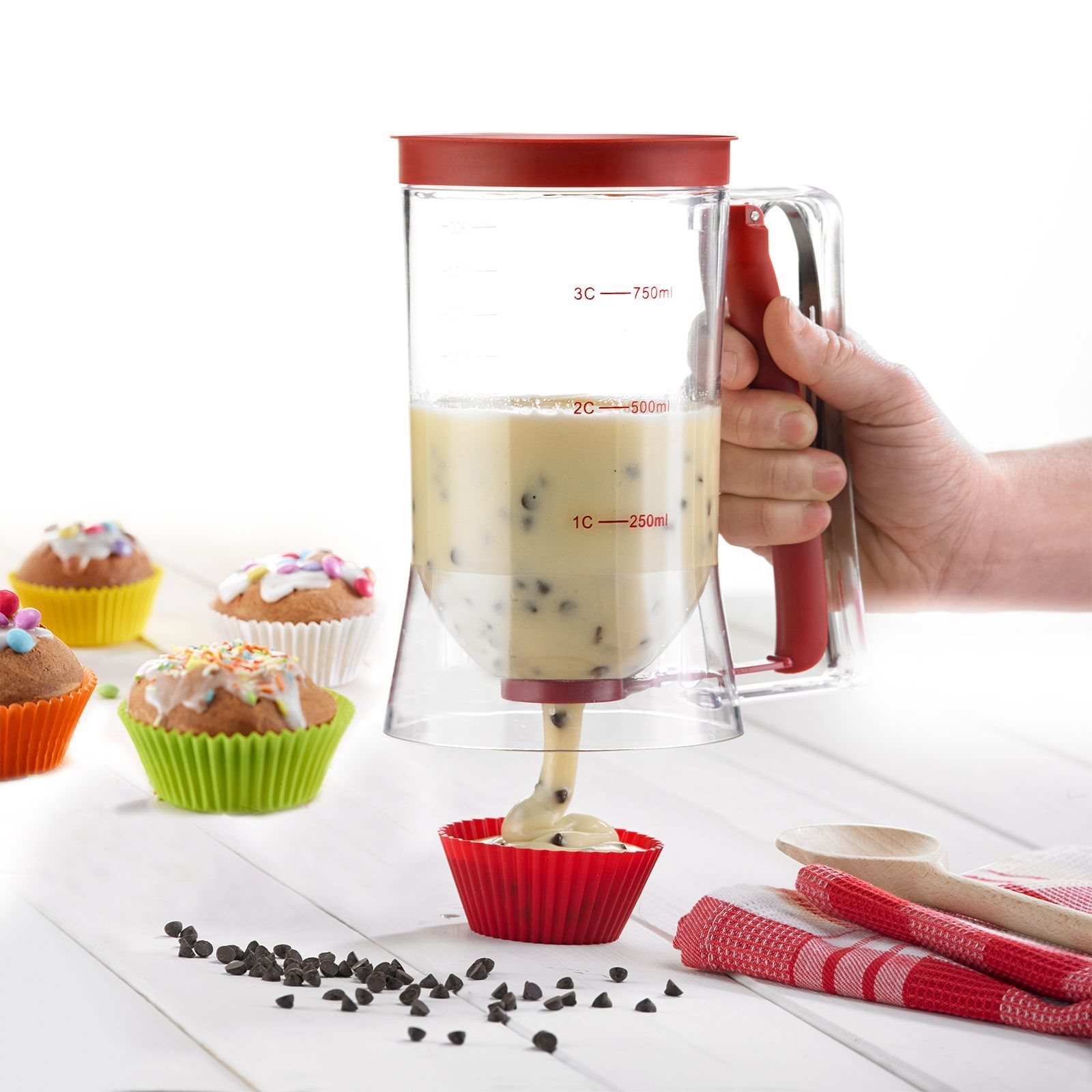 With the help of this container, you can accurately pour the desired amount of dough when you prepare muffins, pancakes, waffles and many other desserts.