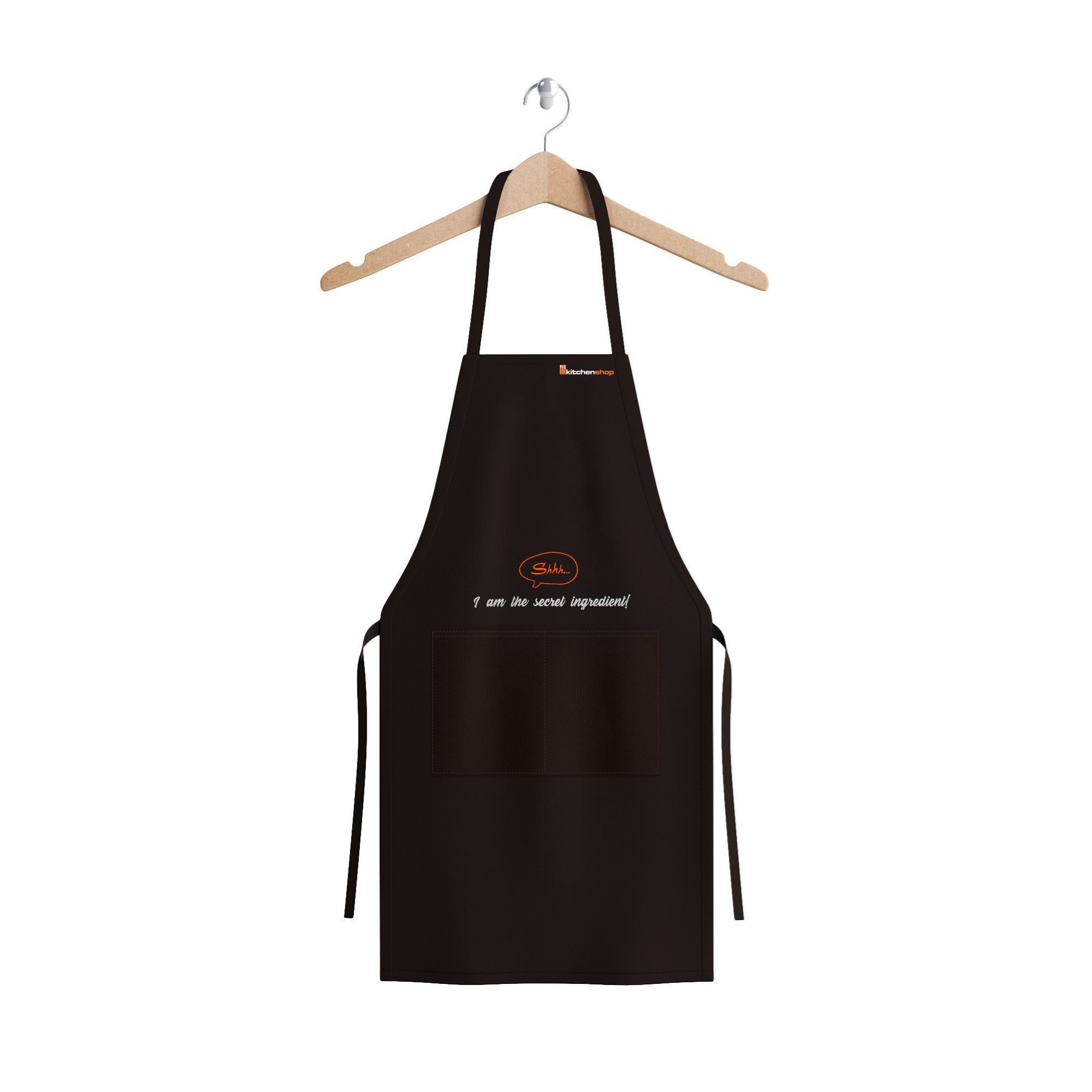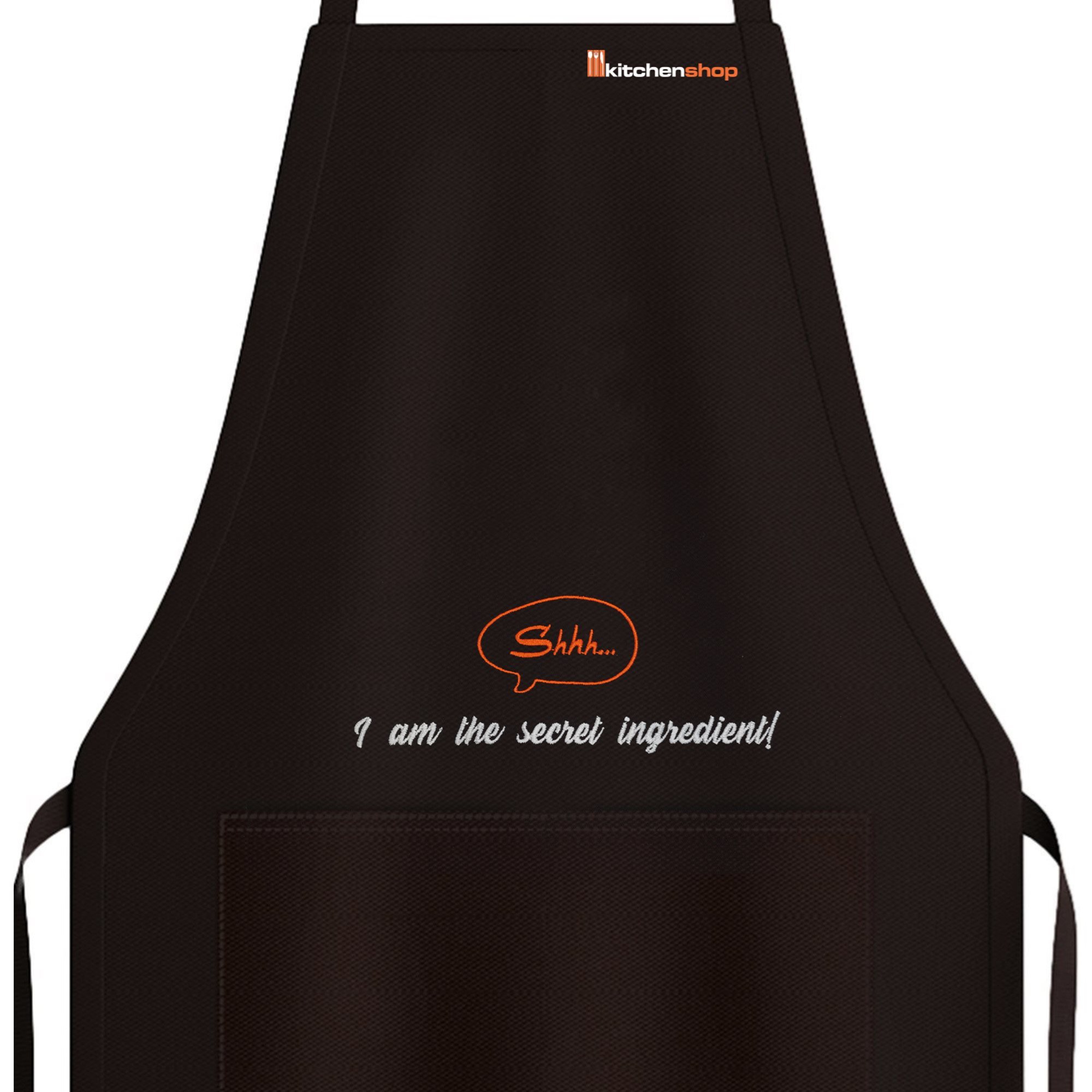 Inscribed with the fun message: “I am the secret ingredient” on a black background, the adjustable apron (at the top) measures 90 cm x 70 cm, fits neatly on your waist and is the one that makes the rules in the kitchen!