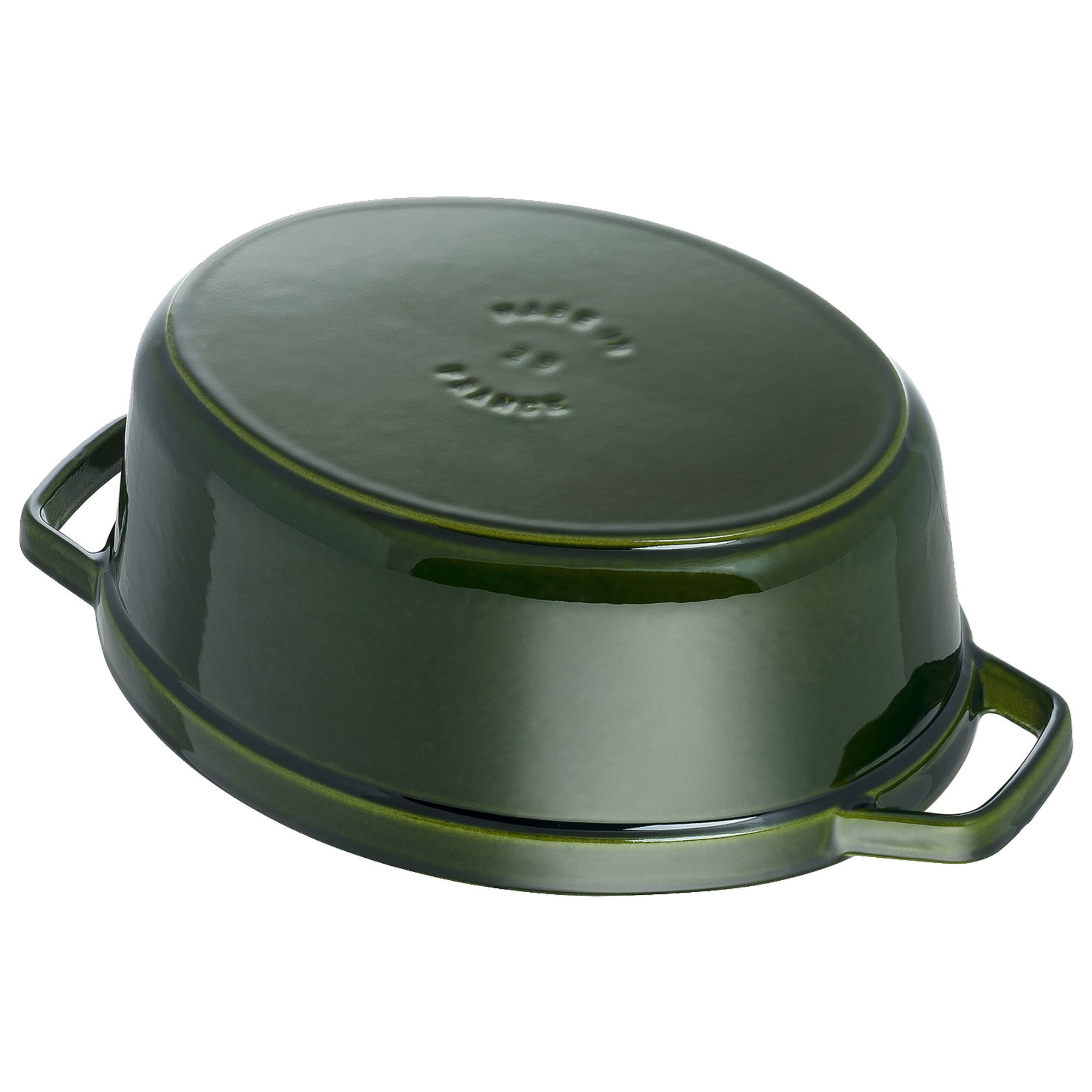 Cocotte oval cooking pot, Staub brand, diameter 33 cm, capacity 6.7 l, made from cast iron.