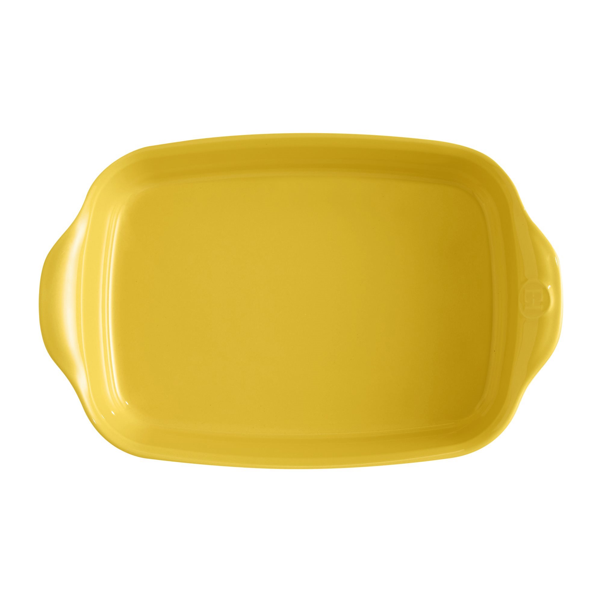 Oven dish, rectangular shape, dimensions 30 x 19 x 6.5 cm (inner dimensions 21.5 x 15 x 5.5 cm), capacity 1.55 l, with plain and practical design, Emile Henry brand
