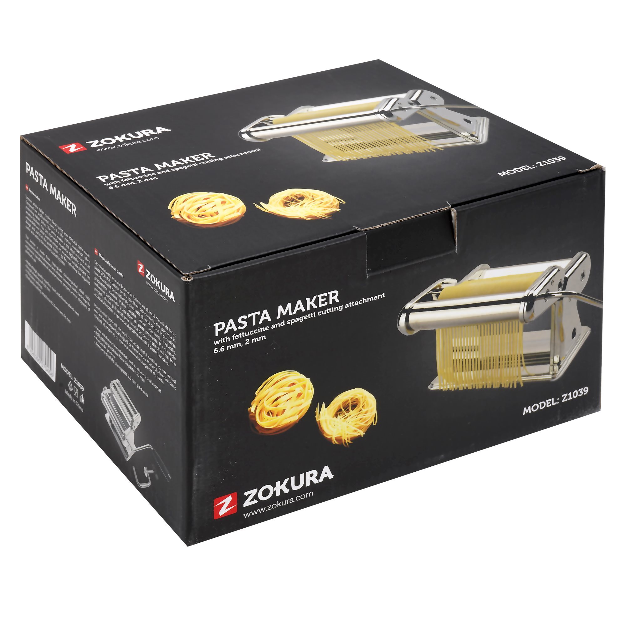 The Zokura pasta maker machine is easy to use and resistant to intensive use, thanks to its design and to the material it is made of (chromed steel). The machine also guarantees a convenient mechanical control and a good stability onto the worktop.