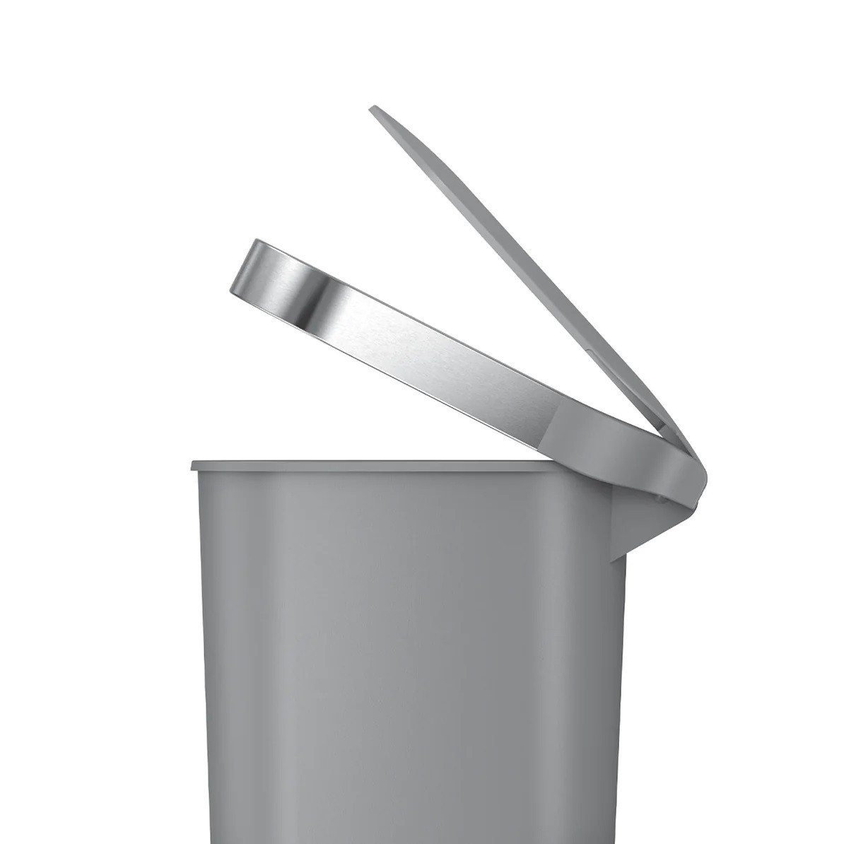 The stainless steel edge of the trash can lifts for a quick and easy replacement of the trash bag, then goes down to hold the bag tightly and to conceal it.
