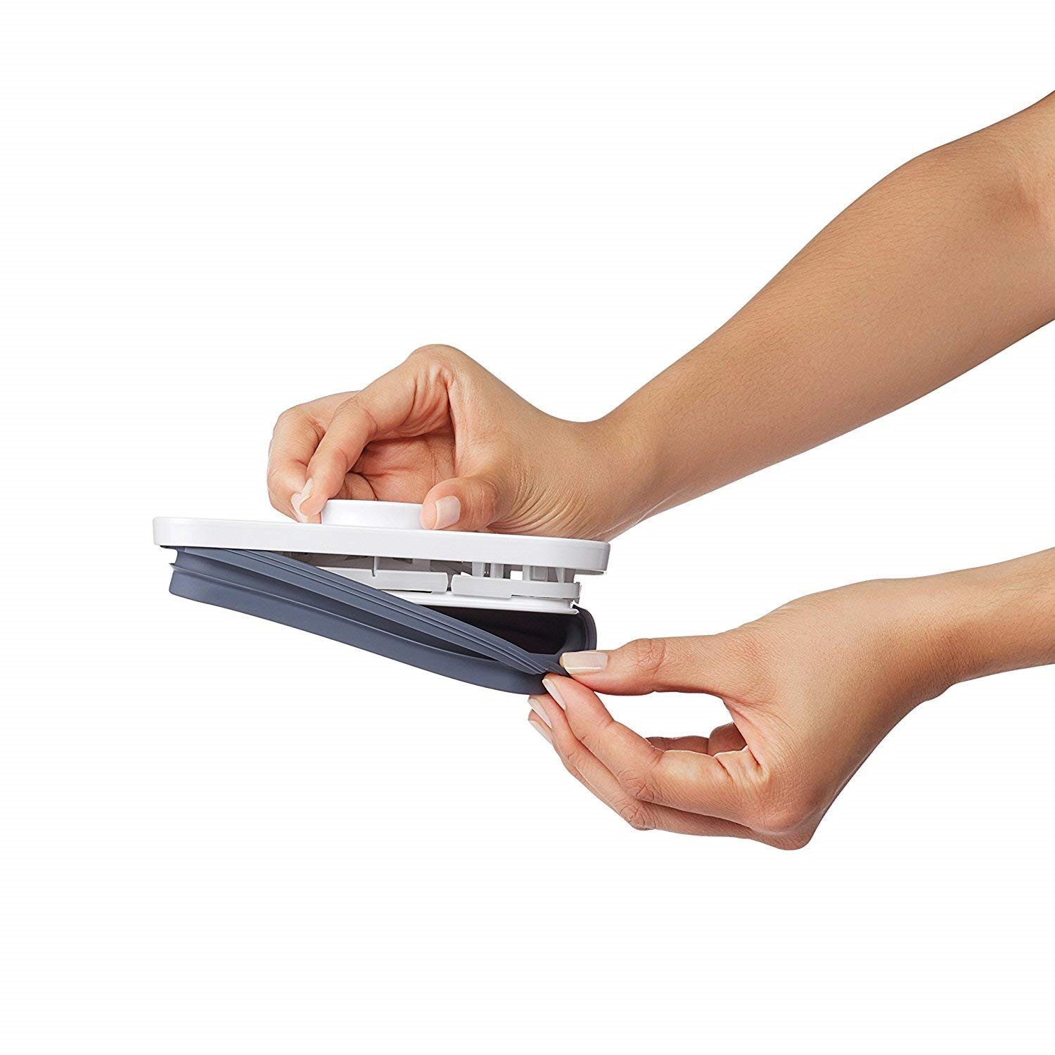 The mechanism located on the lid of each food container creates airtight space inside and, when the button is lifted, it can serve as a handle to easily open the lid. The food container corners are rounded to facilitate pouring.