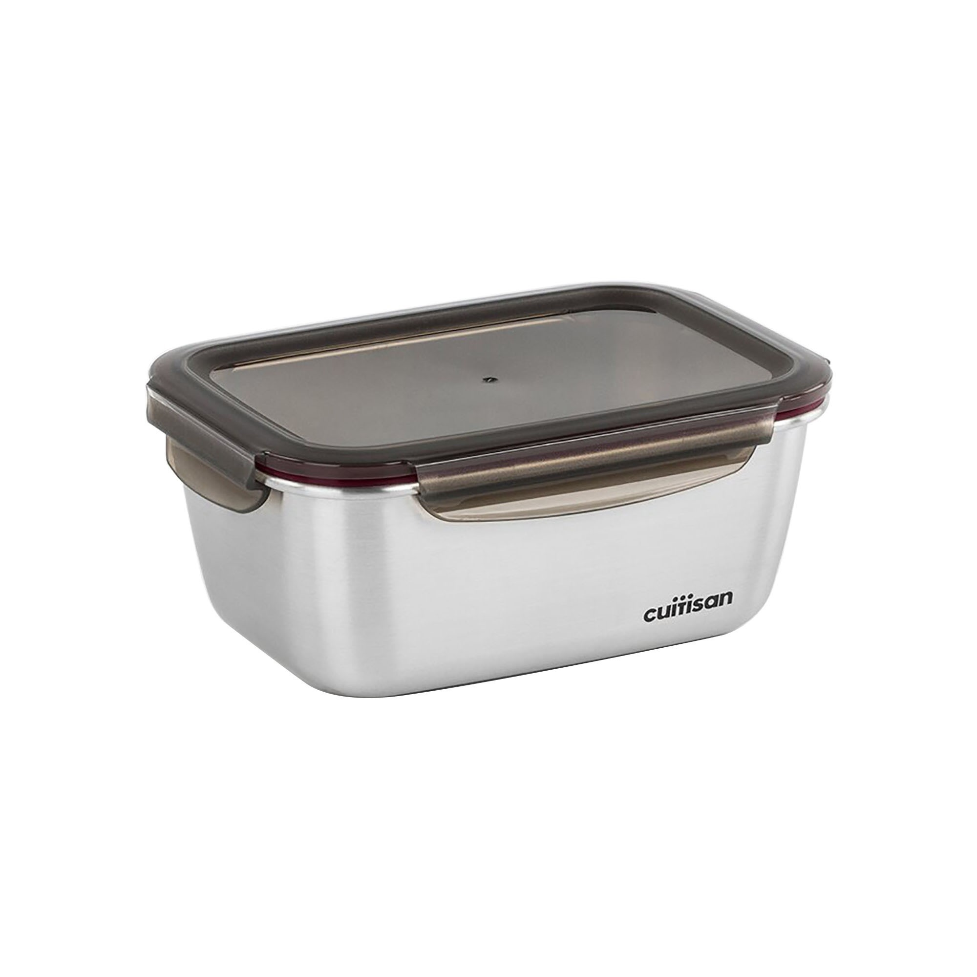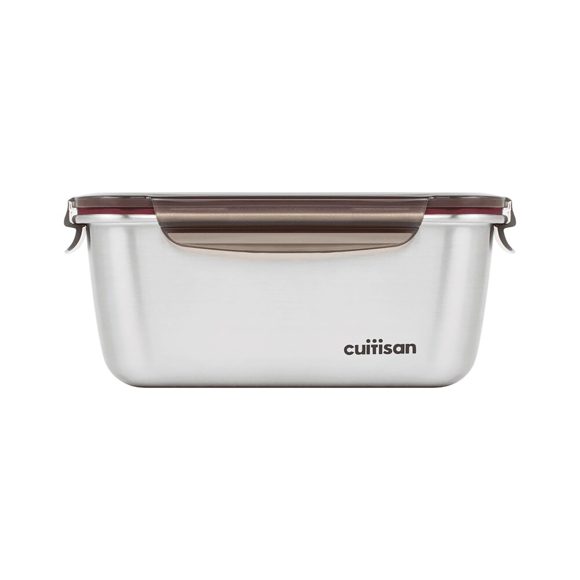 Rectangular food storage container, Cuitisan brand with a capacity of 1800 ml, size 220 × 157 × 95 mm, made of "Cromosteel" stainless steel, with polypropylene lid.