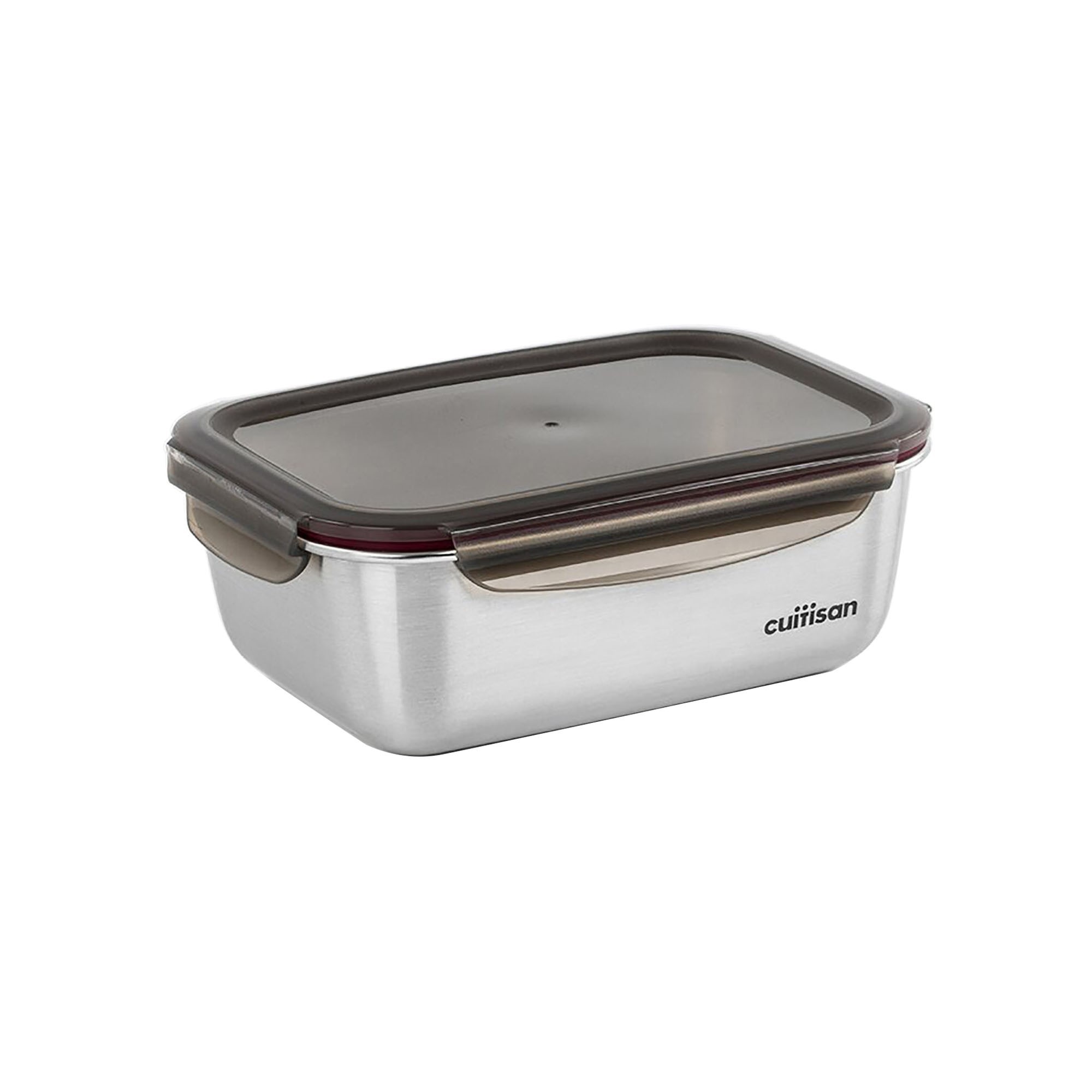 Rectangular food storage container, produced by Cuitisan, capacity 3600 ml, size 259 × 195 × 121 mm, made from Cromosteel stainless steel, with lid made of polypropylene.