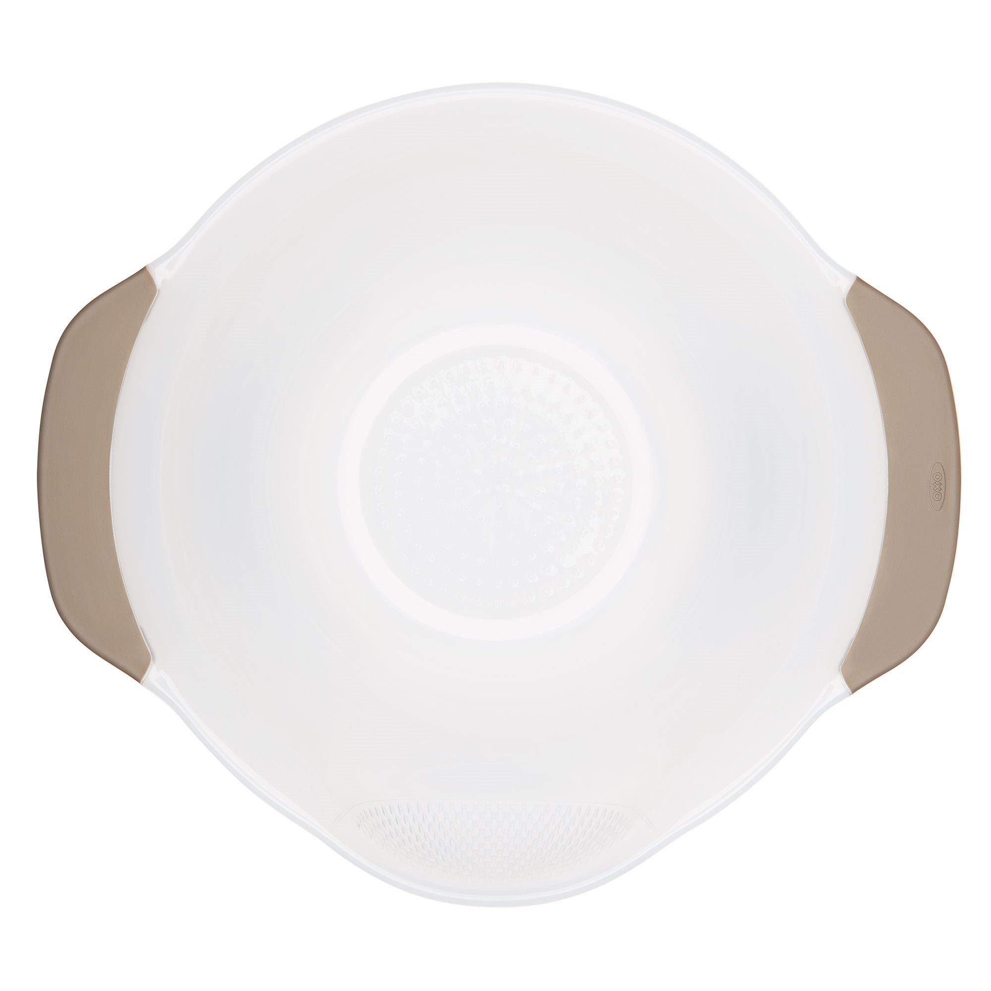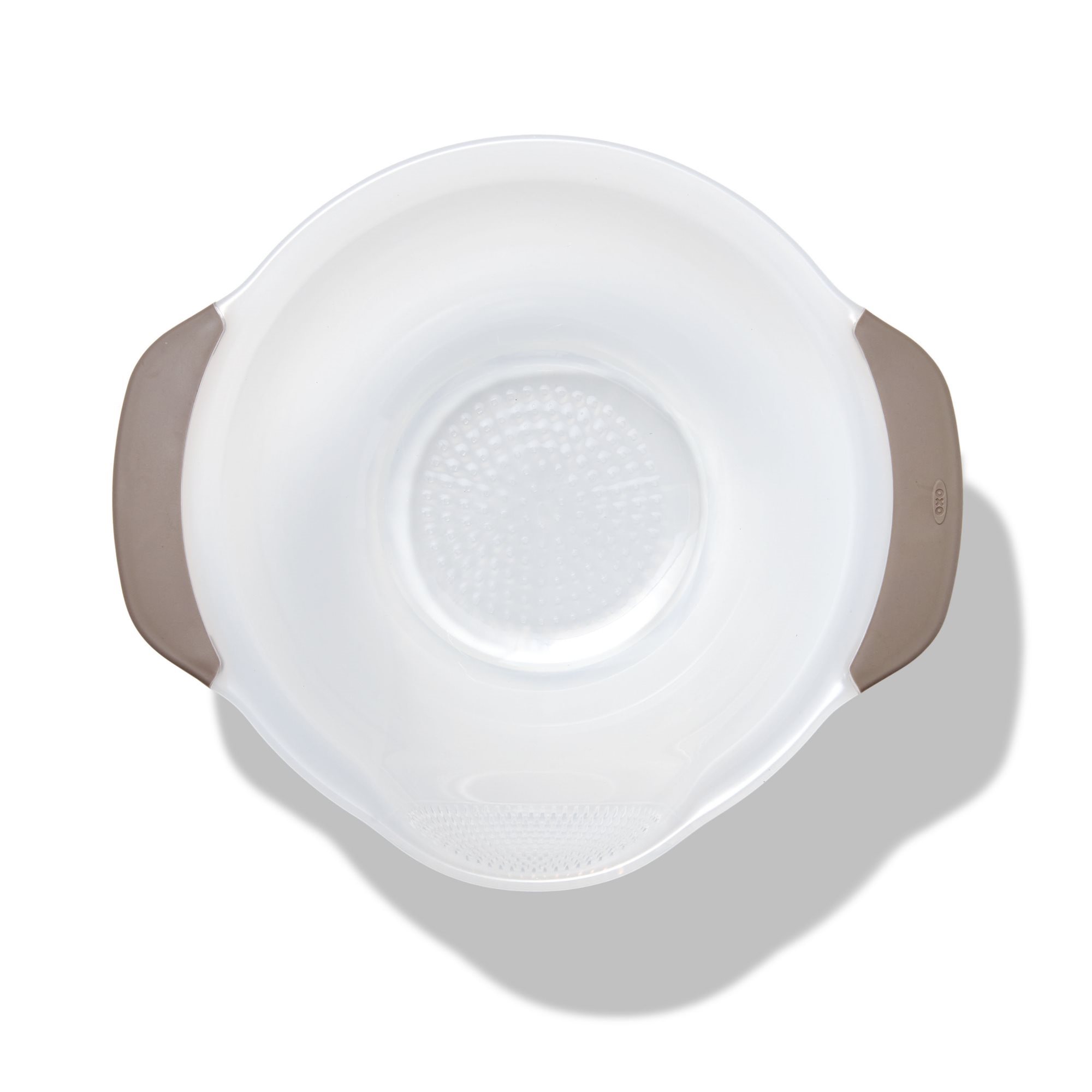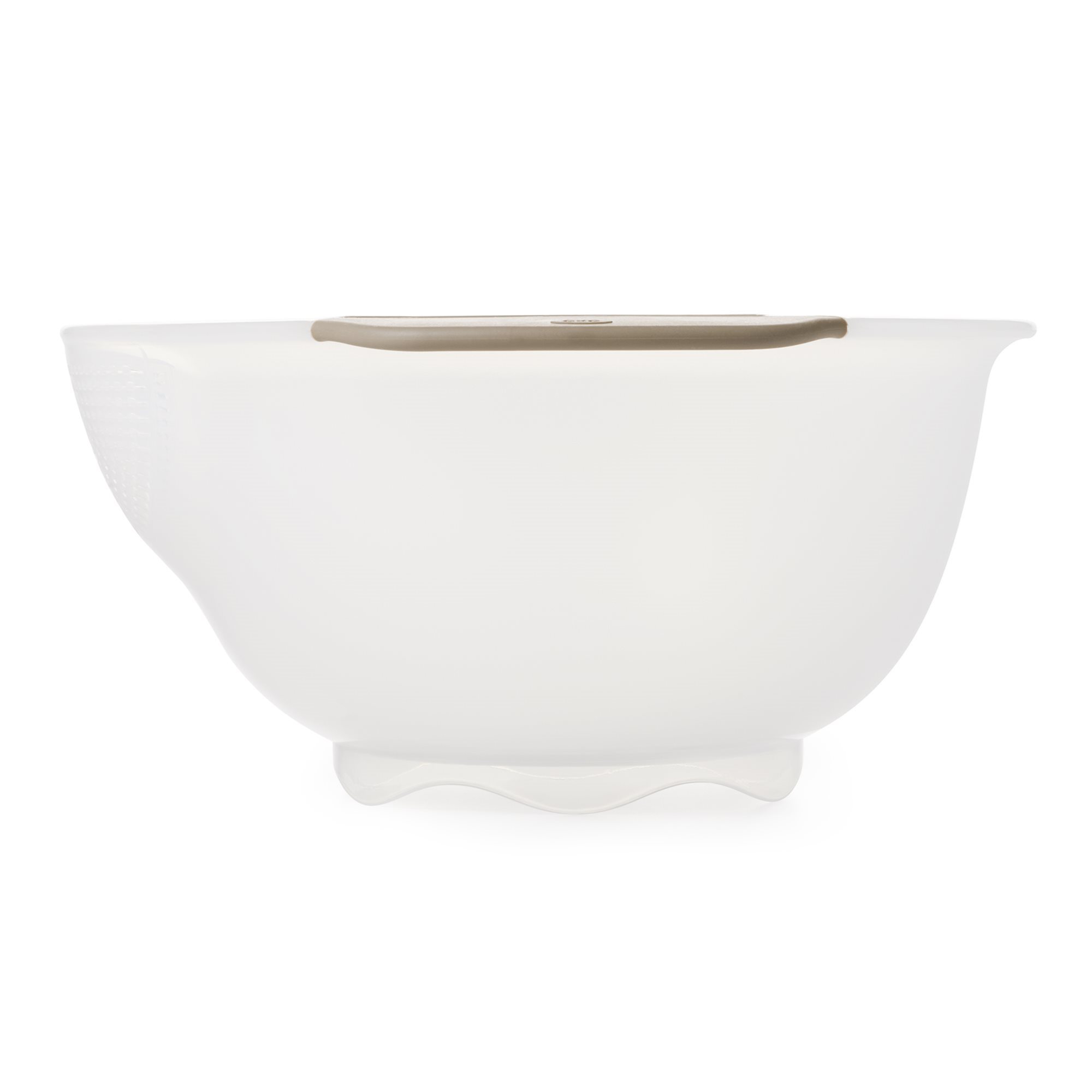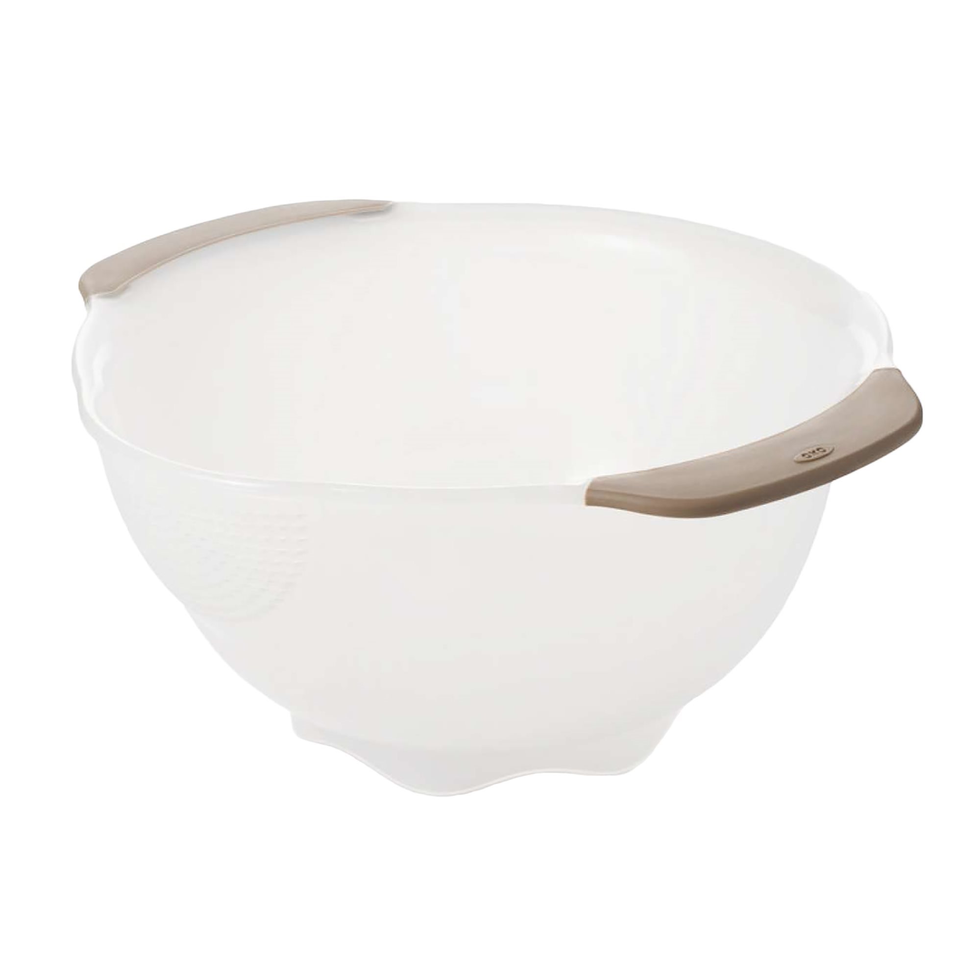 Rice draining colander, Oxo brand made from plastic.