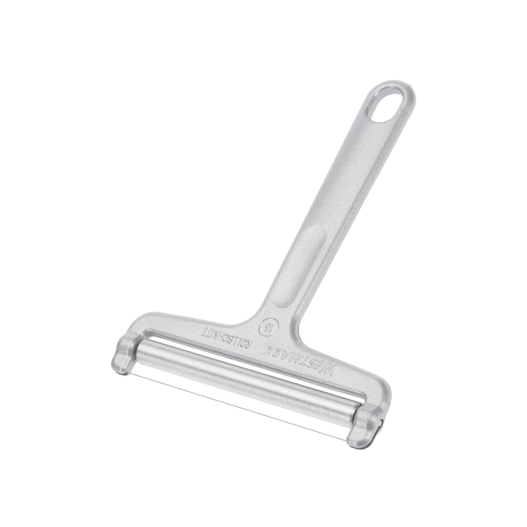 Slicing device, Westmark brand, for cutting hard cheese or semi-hard cheeses (gouda, edam, emmental) into slices of different thicknesses, depending on the angle from which the slicing is made.