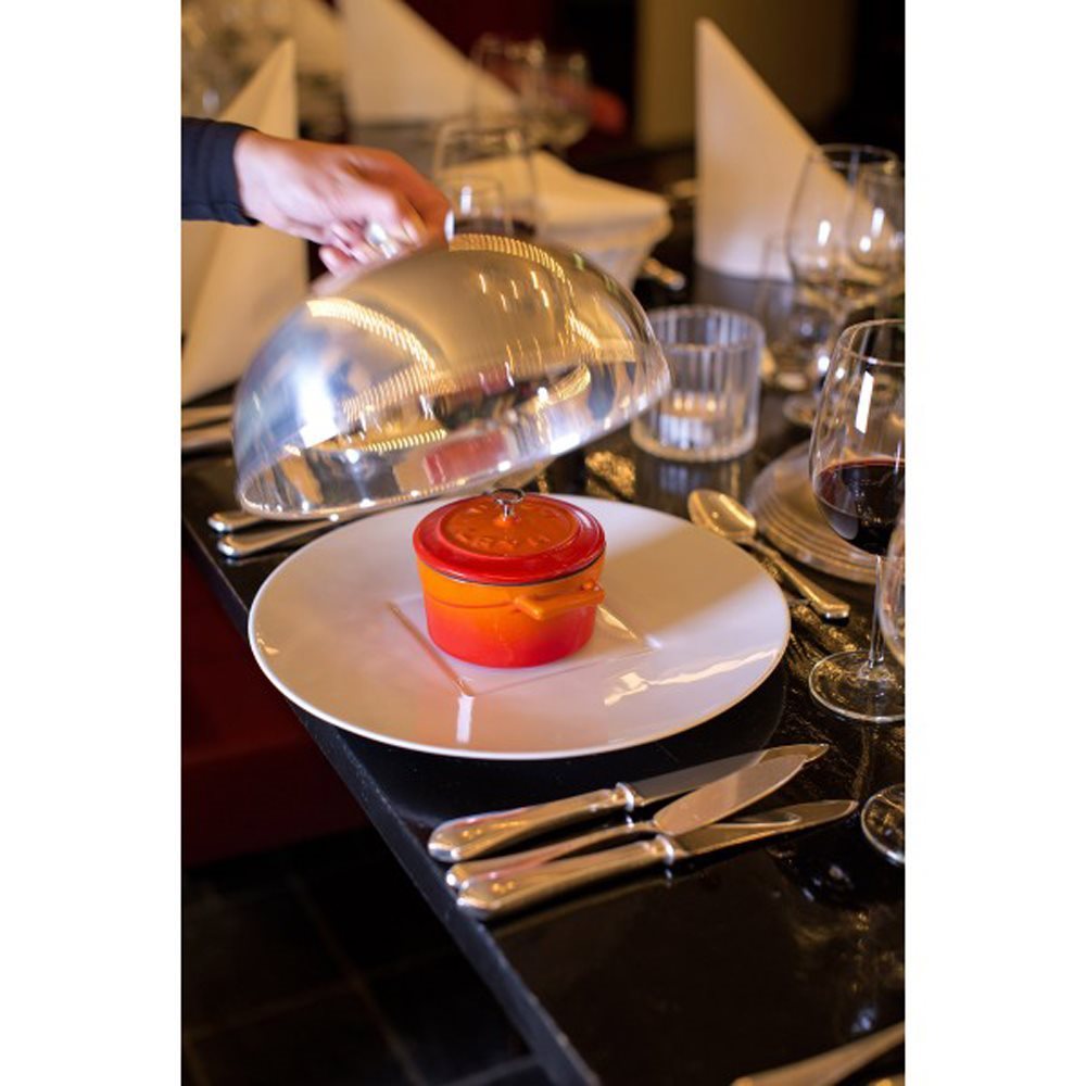The lid is flat and has small protrusions on the inside, thus, ensuring that moisture is kept inside. Thanks to these features, a "rain" effect develops inside the saucepan which intensifies the flavors and eases the cooking process.