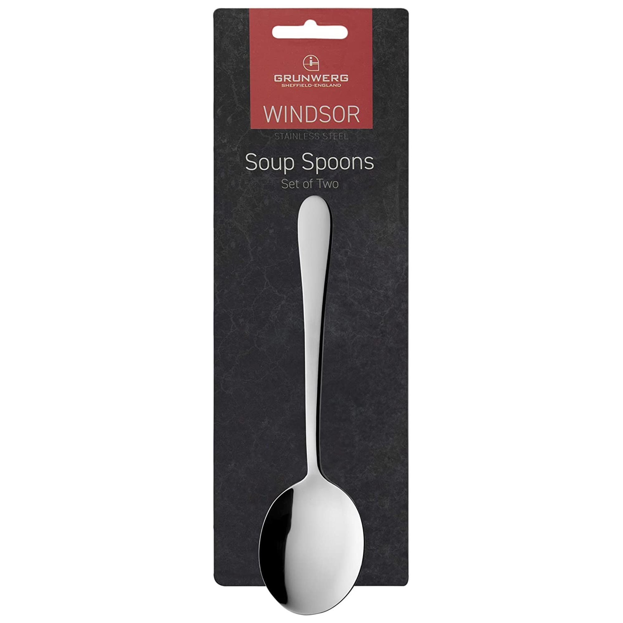 Set of 2 "Windsor" spoons for soup, Grunwerg brand, both made from 18/0 stainless steel.