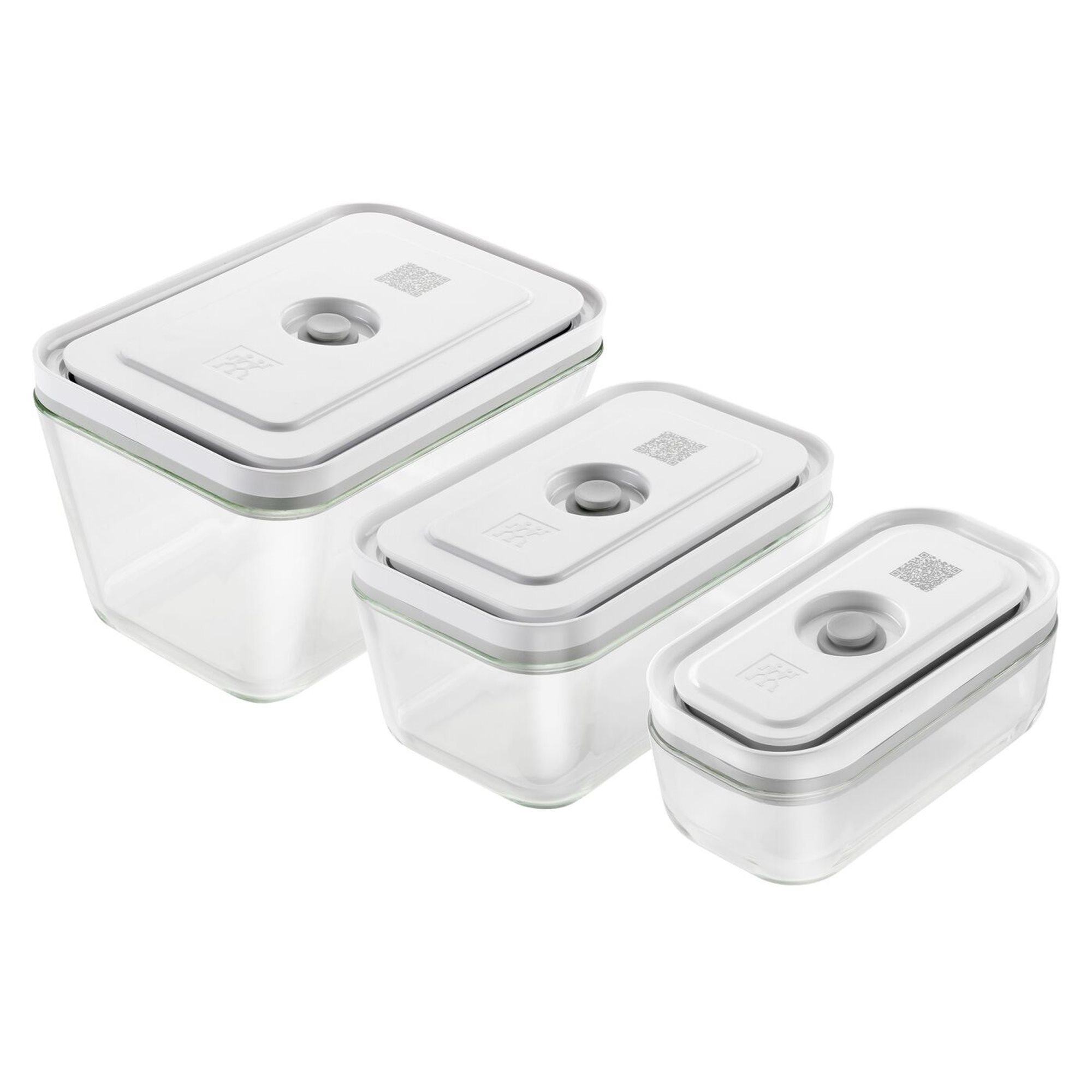 Set of 3 rectangular "FRESH & SAVE" food containers with vacuum seal, made of borosilicate glass, Zwilling brand