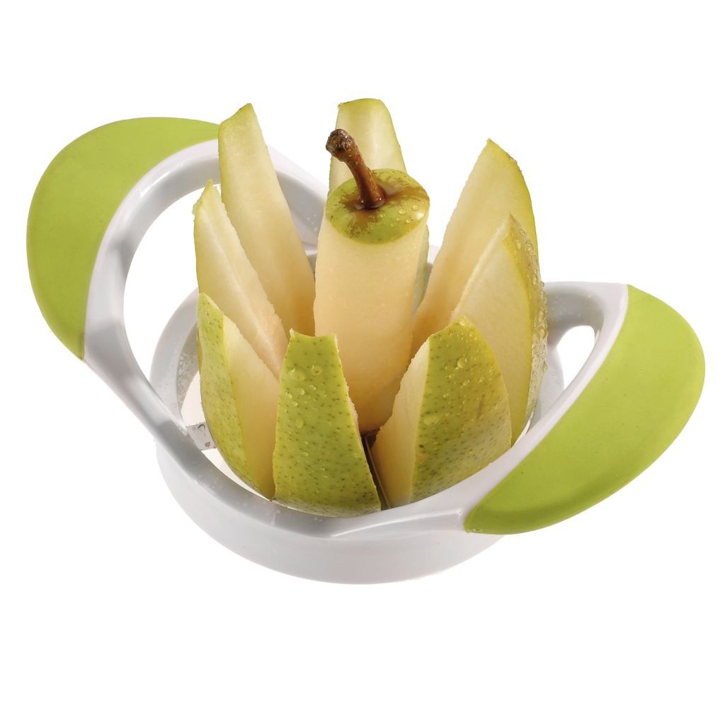 Slicer for pears and apples, produced by Westmark, made from plastic with stainless steel blades.