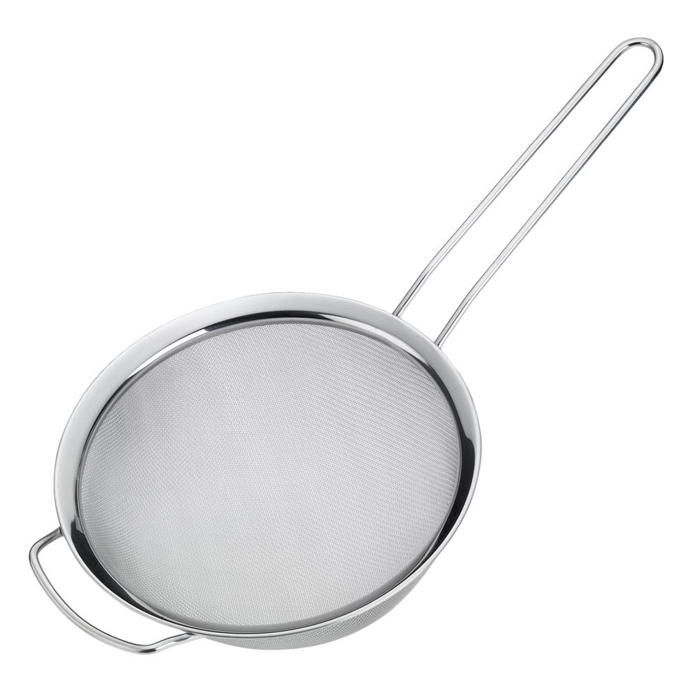 The large sieve, with ultra-fine mesh, is ideal for washing, draining, and straining vegetables, salads, and fruits, as well as draining rice or pasta. The support loop and long handle allow the sieve to be easily and securely positioned over sinks, bowls, or pots. Pastries and baked delicacies can also be dusted with sugar or cocoa powder.