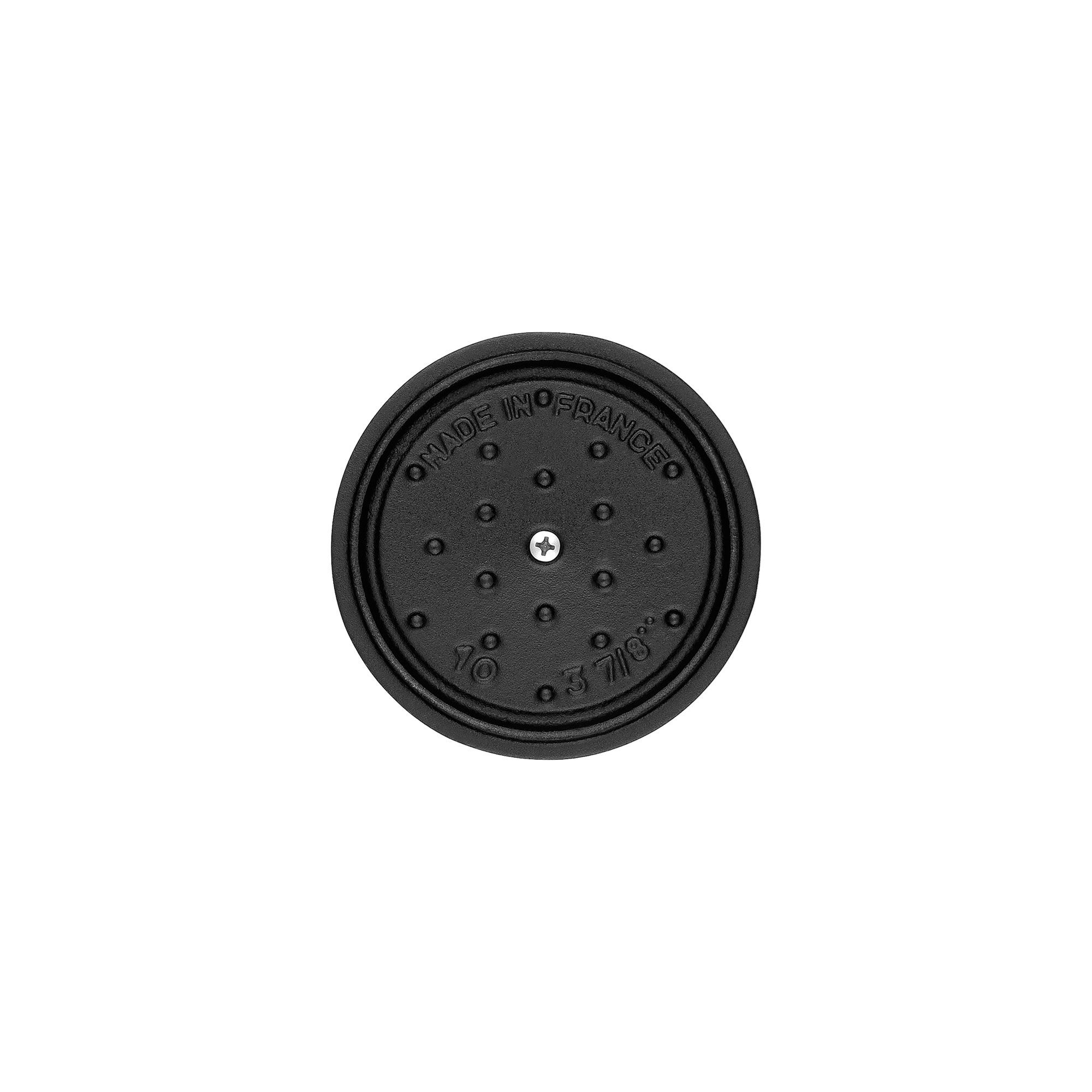 En el interior, la olla está recubierta de una capa de esmalte negro mate producida por Staub mediante tecnologías especiales que ofrecen ventajas en el caso de técnicas de cocción como hervir a fuego lento, hornear o caramelizar. Los aceites (grasas) utilizados durante la cocción penetrarán en los poros del esmalte mate y crearán una superficie antiadherente natural y lisa. Es por eso que las ollas Staub mejoran cada vez más con el paso de los años, a medida que las usas.