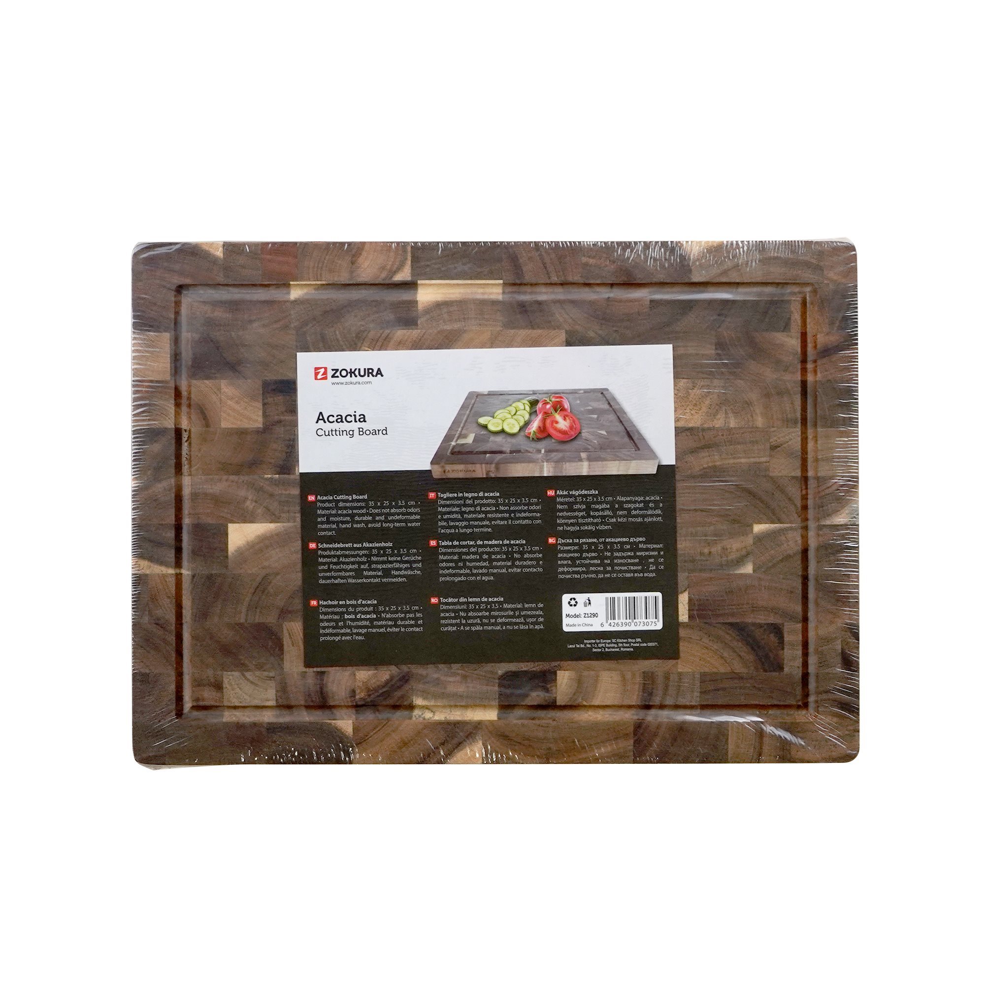 Tabla de cortar, fabricada en madera de acacia, material reconocido por su resistencia y durabilidad, marca Zokura