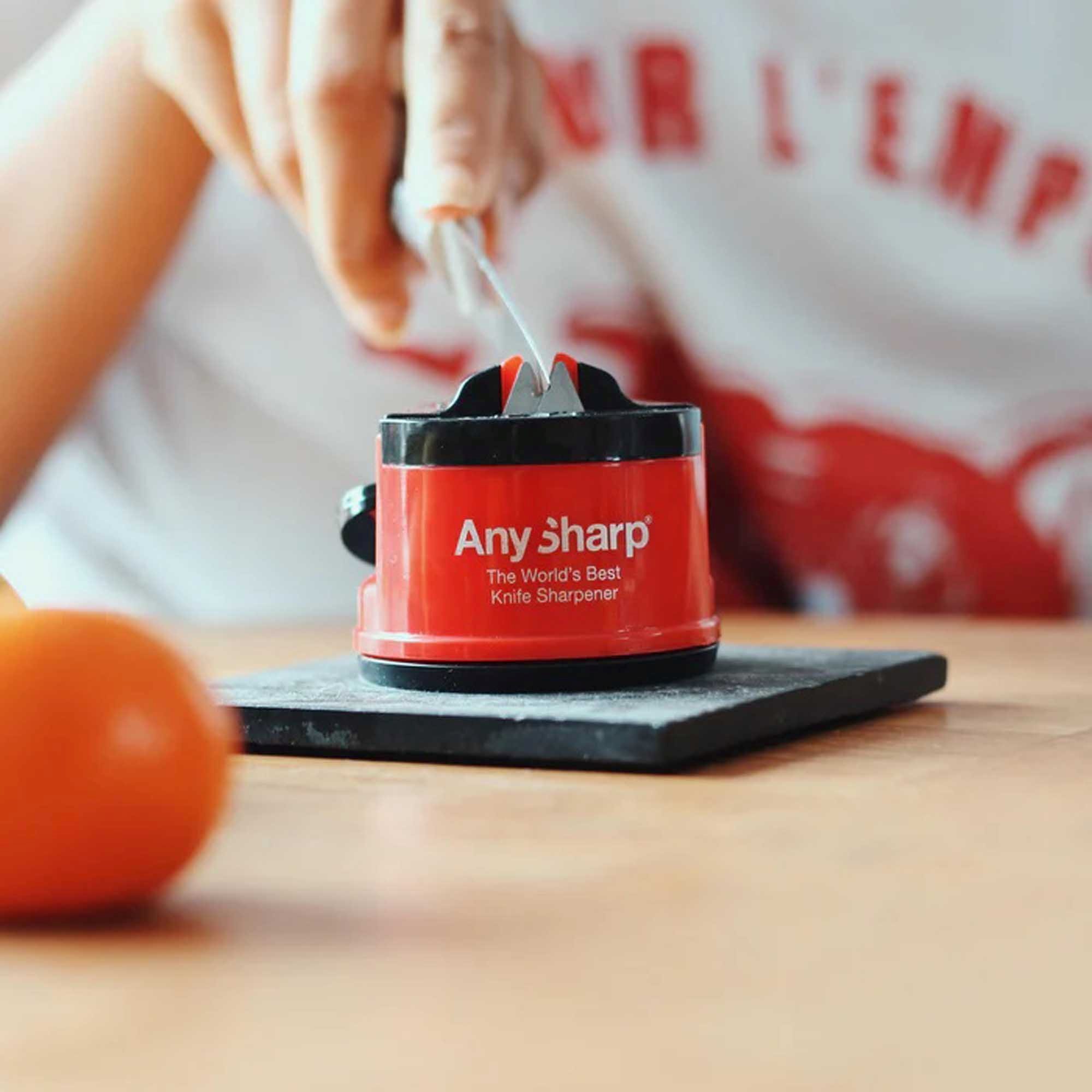 L’aiguiseur de couteaux Premium, AnySharp marque est idéal pour tout type de couteau de cuisine à lame droite ou avec de grandes encoches.