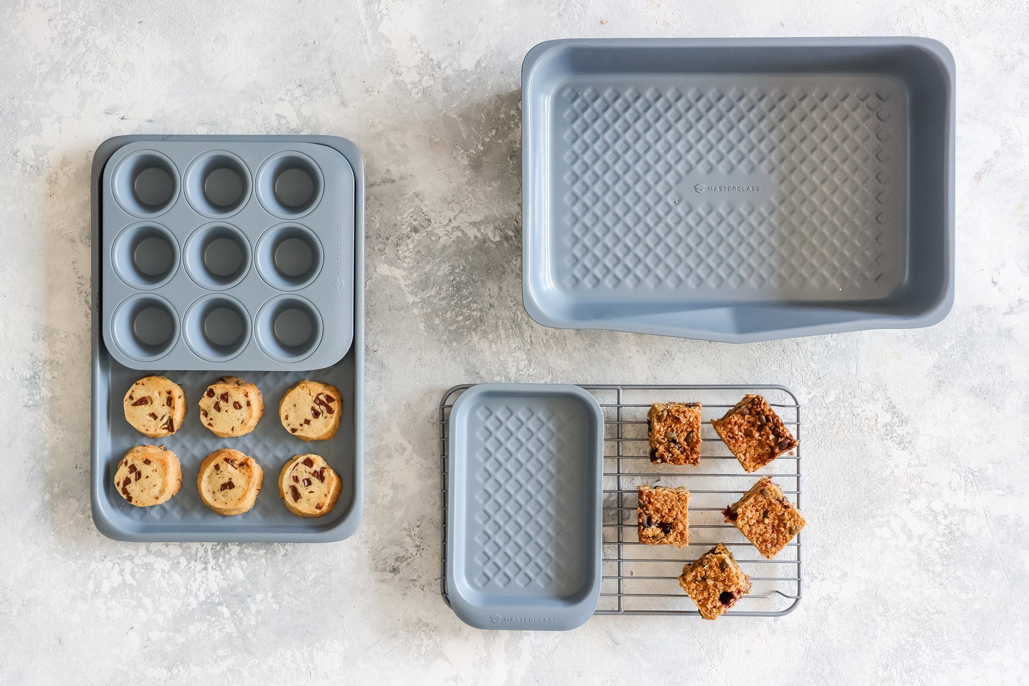 Questo set fa parte di Smart Ceramic, la collezione più venduta di MasterClass e comprende una teglia, una teglia per muffin, due teglie e una griglia di raffreddamento.