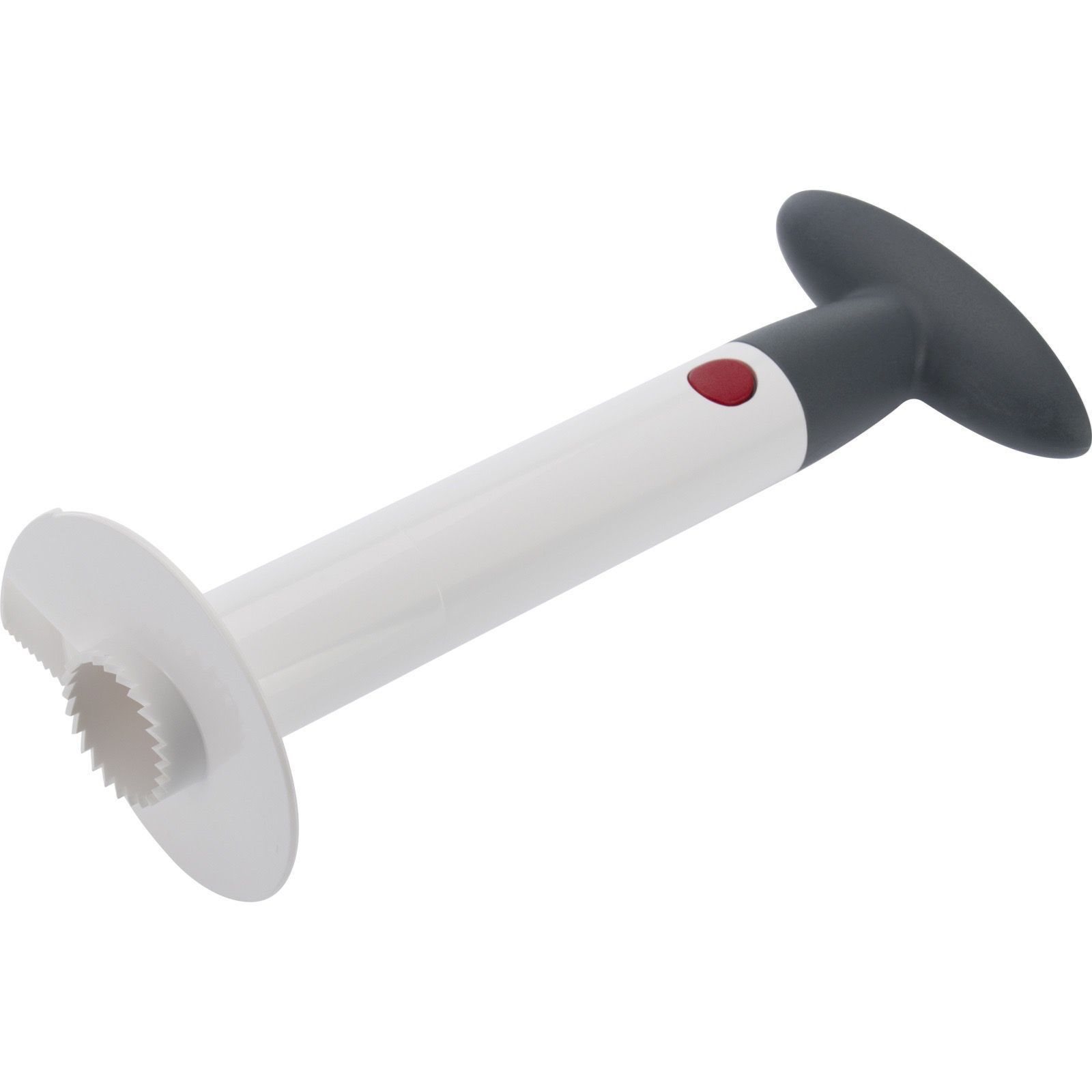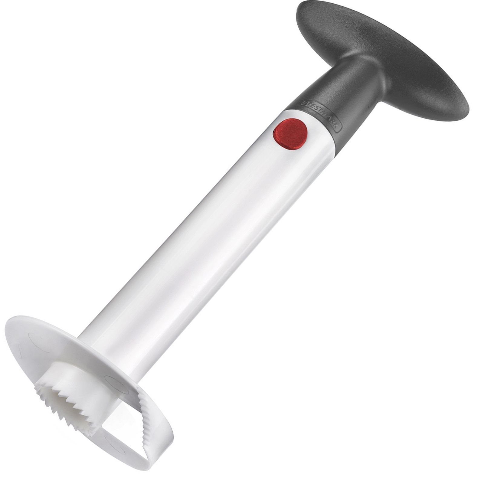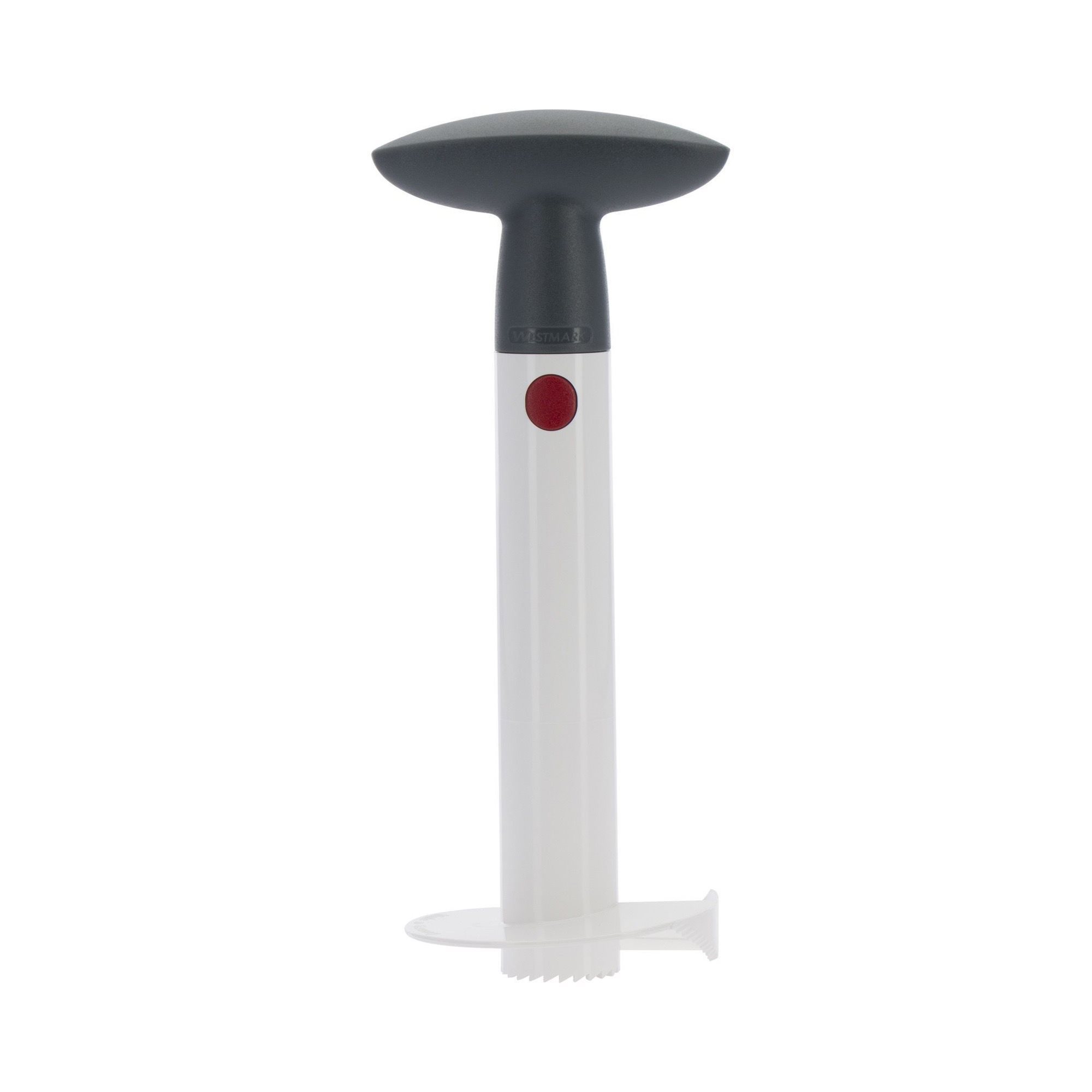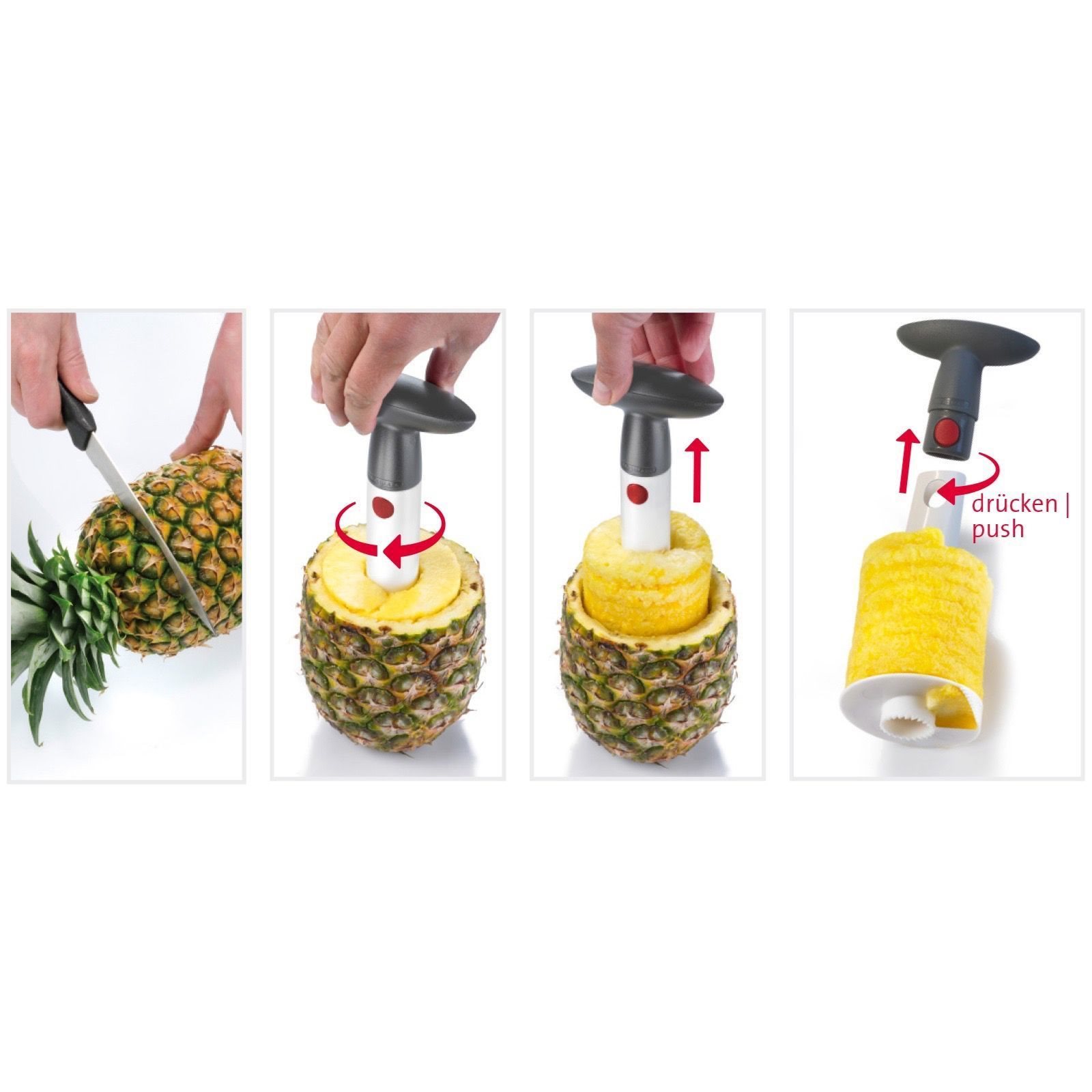 Affettatrice di ananas, marchio Westmark, in plastica, che assicura la rimozione del nucleo, la rimozione della buccia e l'affettatura in un'unica operazione, preservando il succo del frutto.