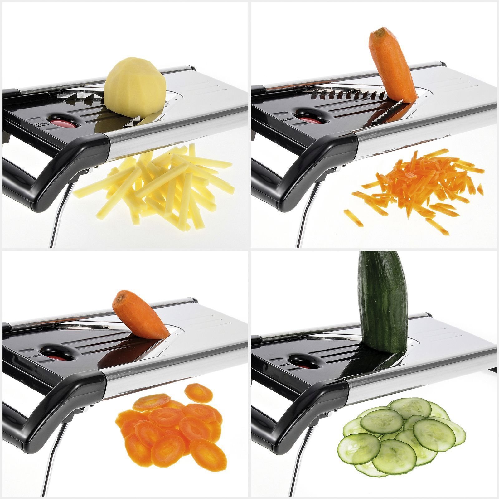 Lo spessore della fetta può essere 1,5 mm, 2,5 mm e 3,5 mm, mentre lo spessore delle fette Julienne può essere 3,5 o 7 mm.
