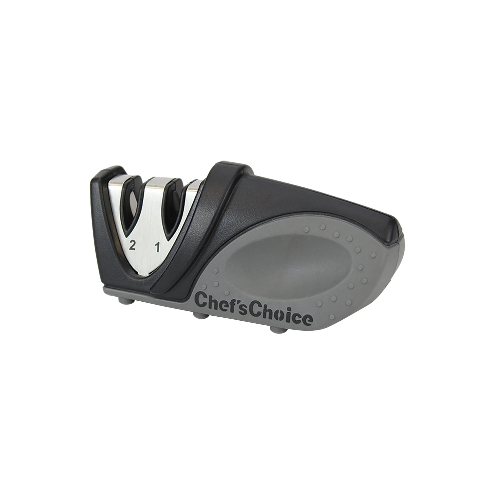 Piccolo e potente, questo affilacoltelli manuale Chef's Choice con 2 fasi di affilatura crea un bordo della lama affilato e durevole.