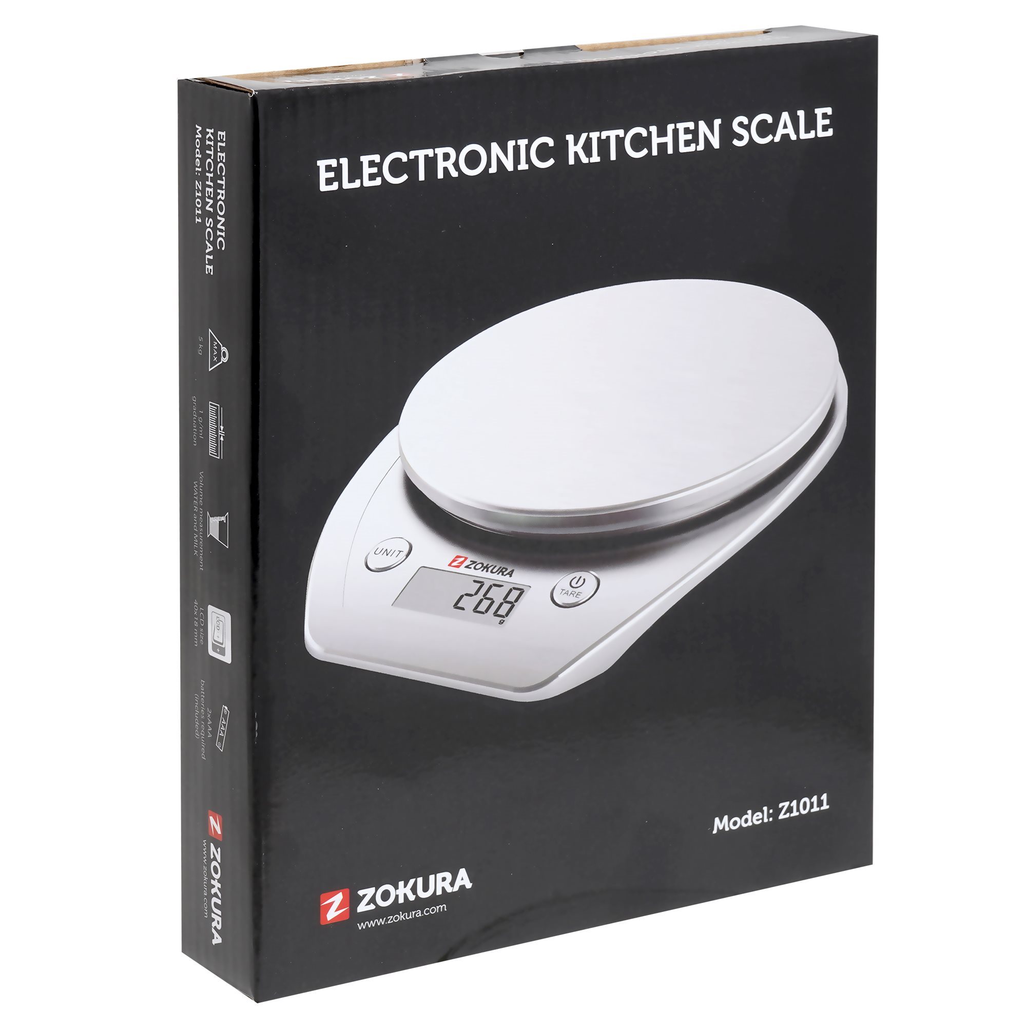 La bilancia funziona con 2 batterie AAA (incluse) e può supportare un peso massimo di 5 chilogrammi che mostra accuratamente sul suo display digitale.