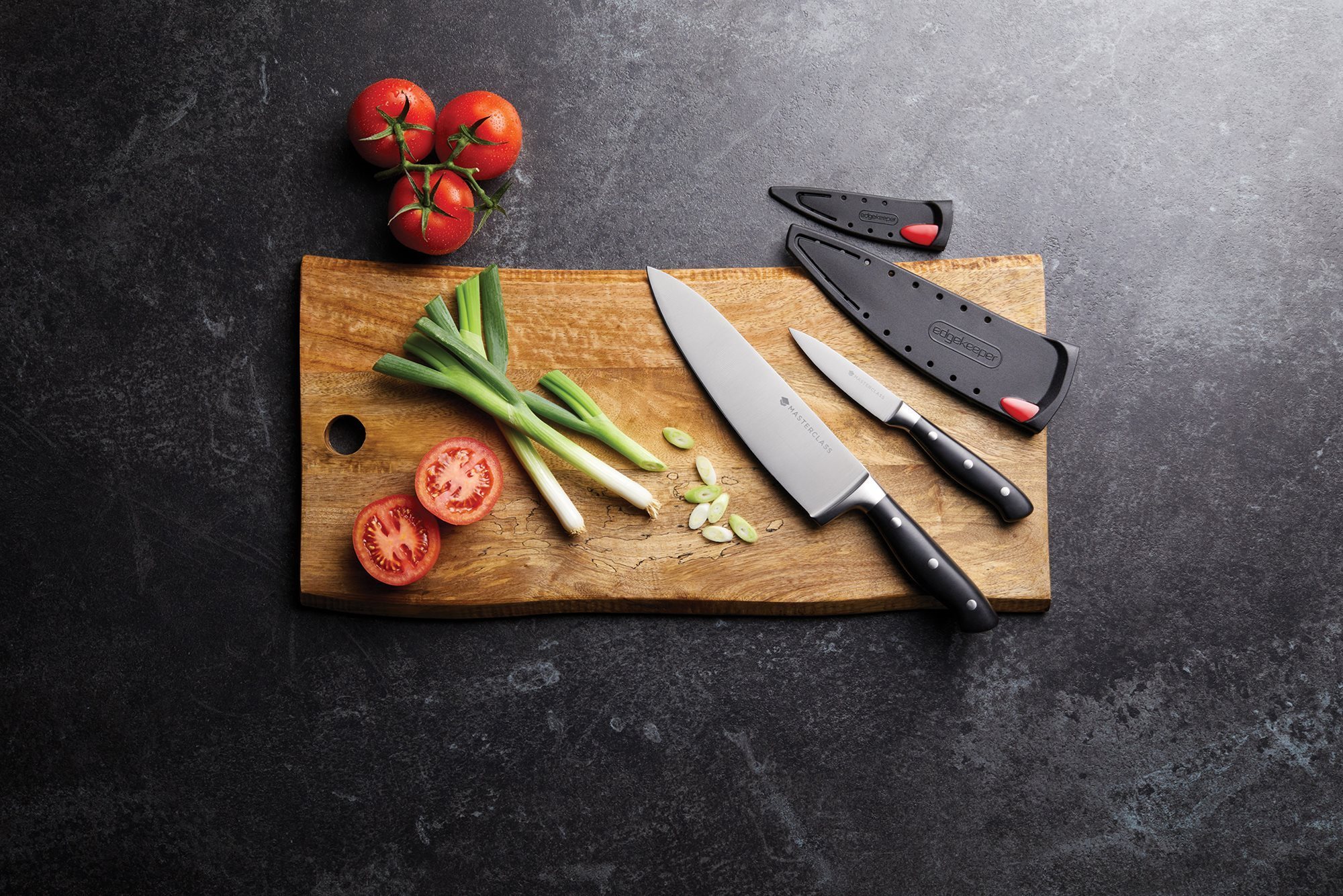 Questo coltello, che unisce il design elegante specifico della gamma Master Class alla tecnologia brevettata Edgekeeper, è dotato di fodero di protezione con affilatore incorporato.