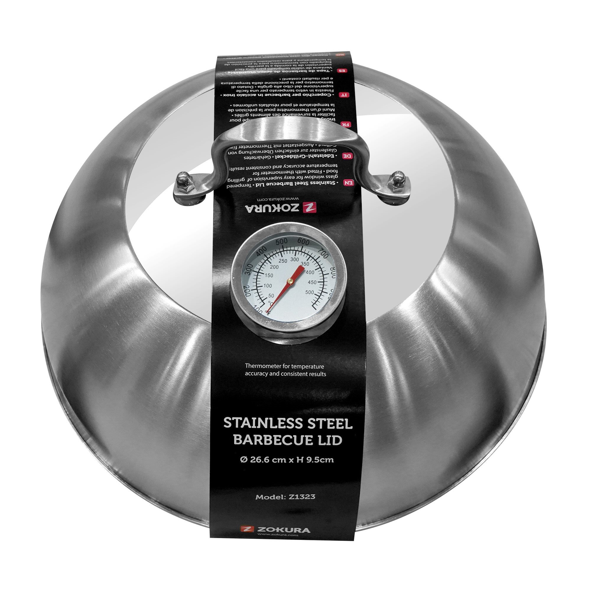 Coperchio per barbecue con termometro, realizzato in acciaio inossidabile, marchio Zokura.