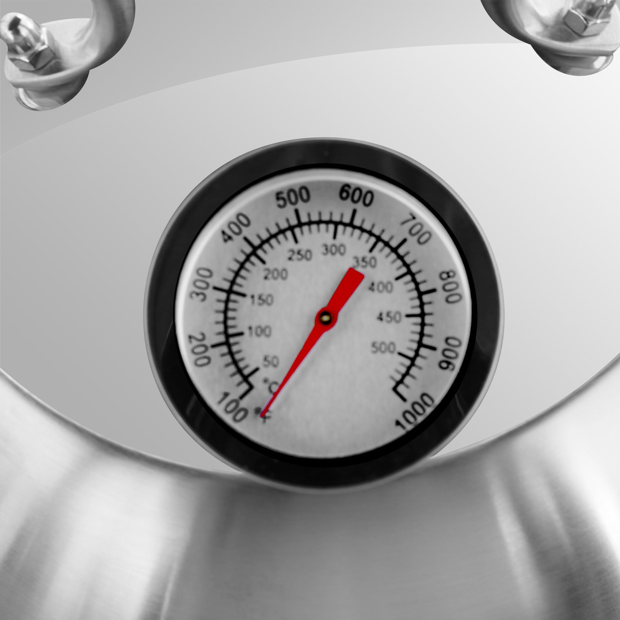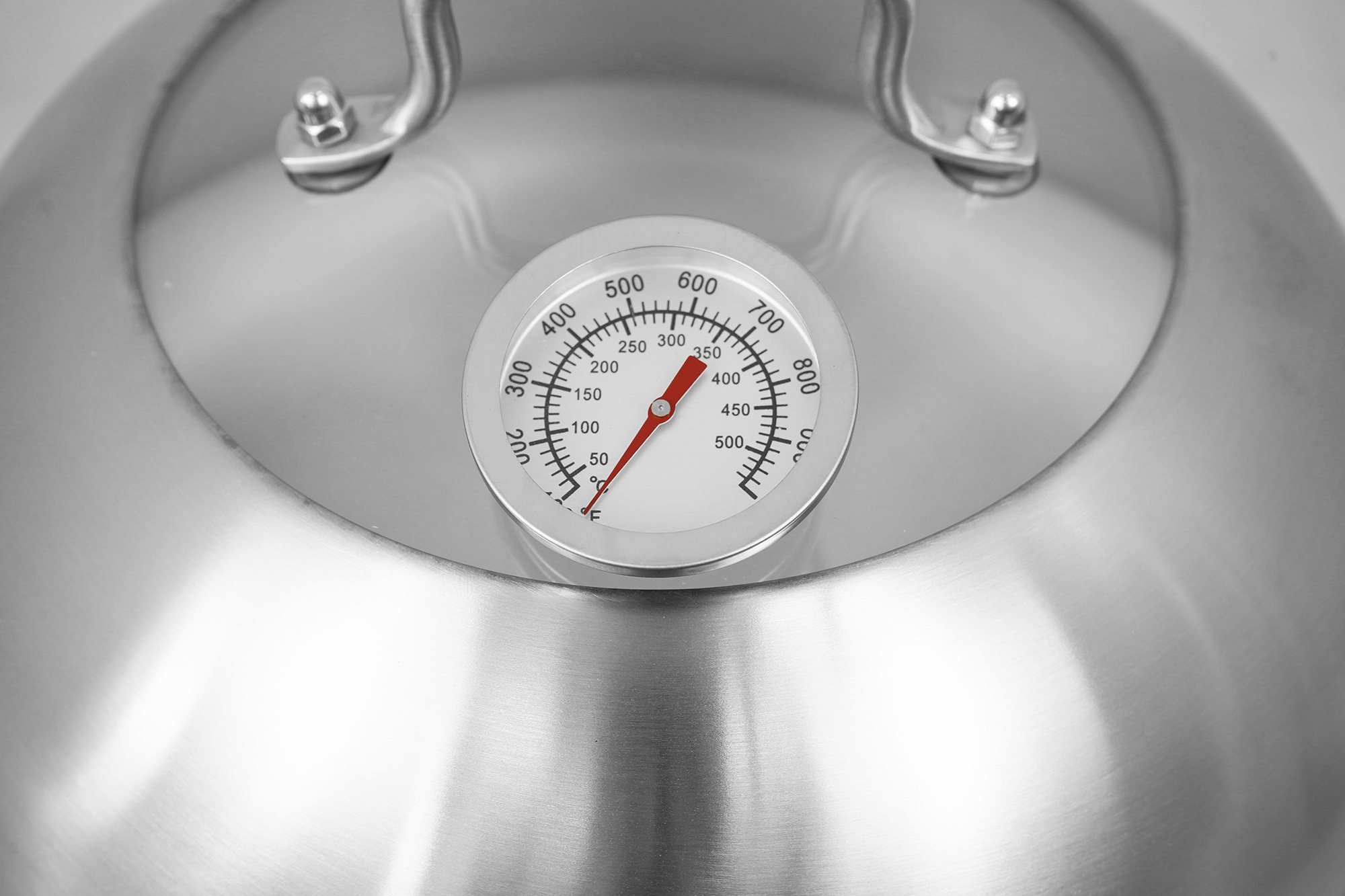 Il coperchio è dotato di un termometro con finestra in vetro temperato, che consente una cottura accurata delle pietanze grigliate.