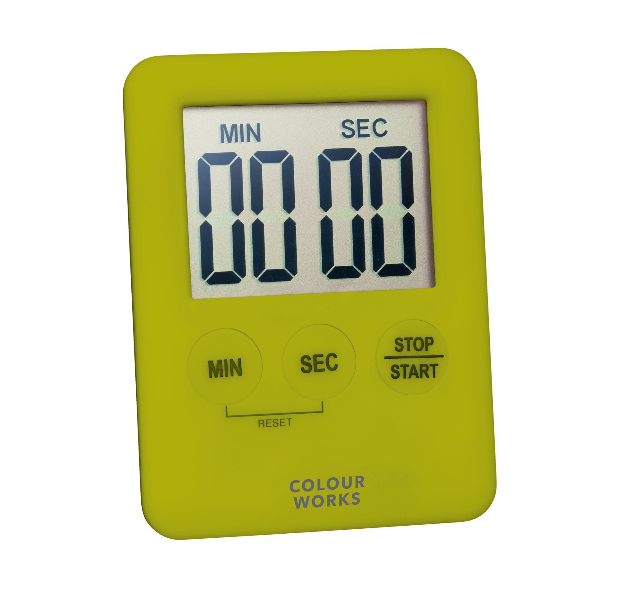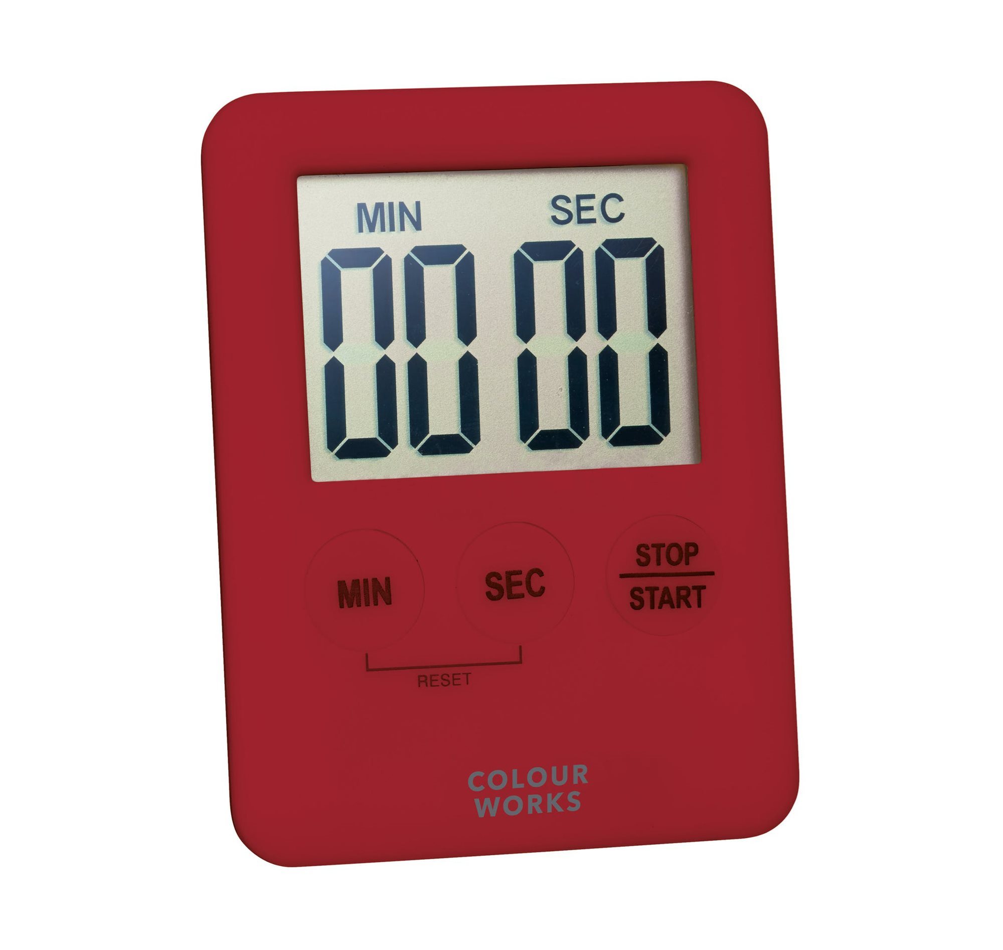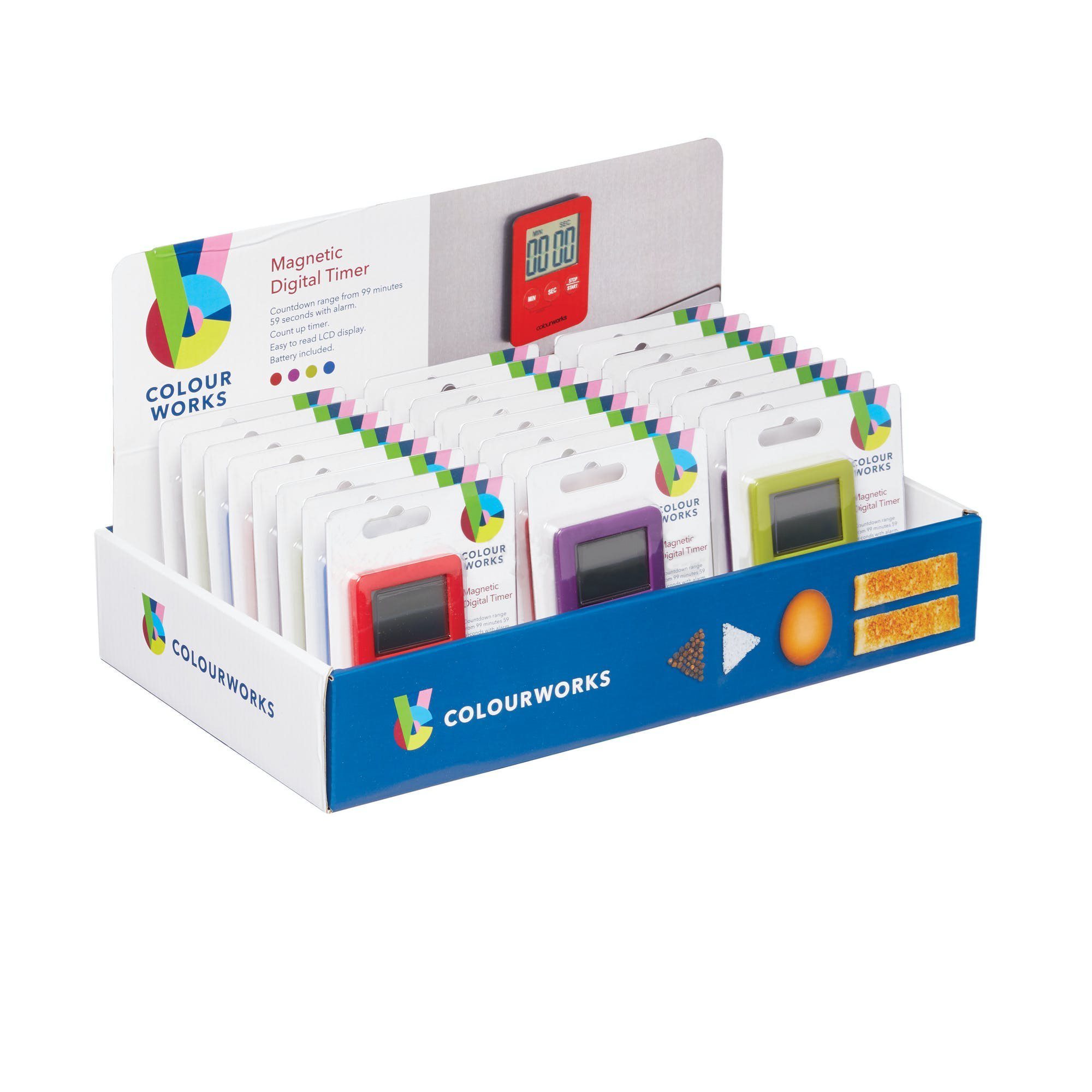 Il timer elettronico della gamma Colourworks può essere programmato fino a 99 minuti, puoi leggere facilmente l'ora sul display LCD e nel frattempo puoi occuparti di qualcos'altro.