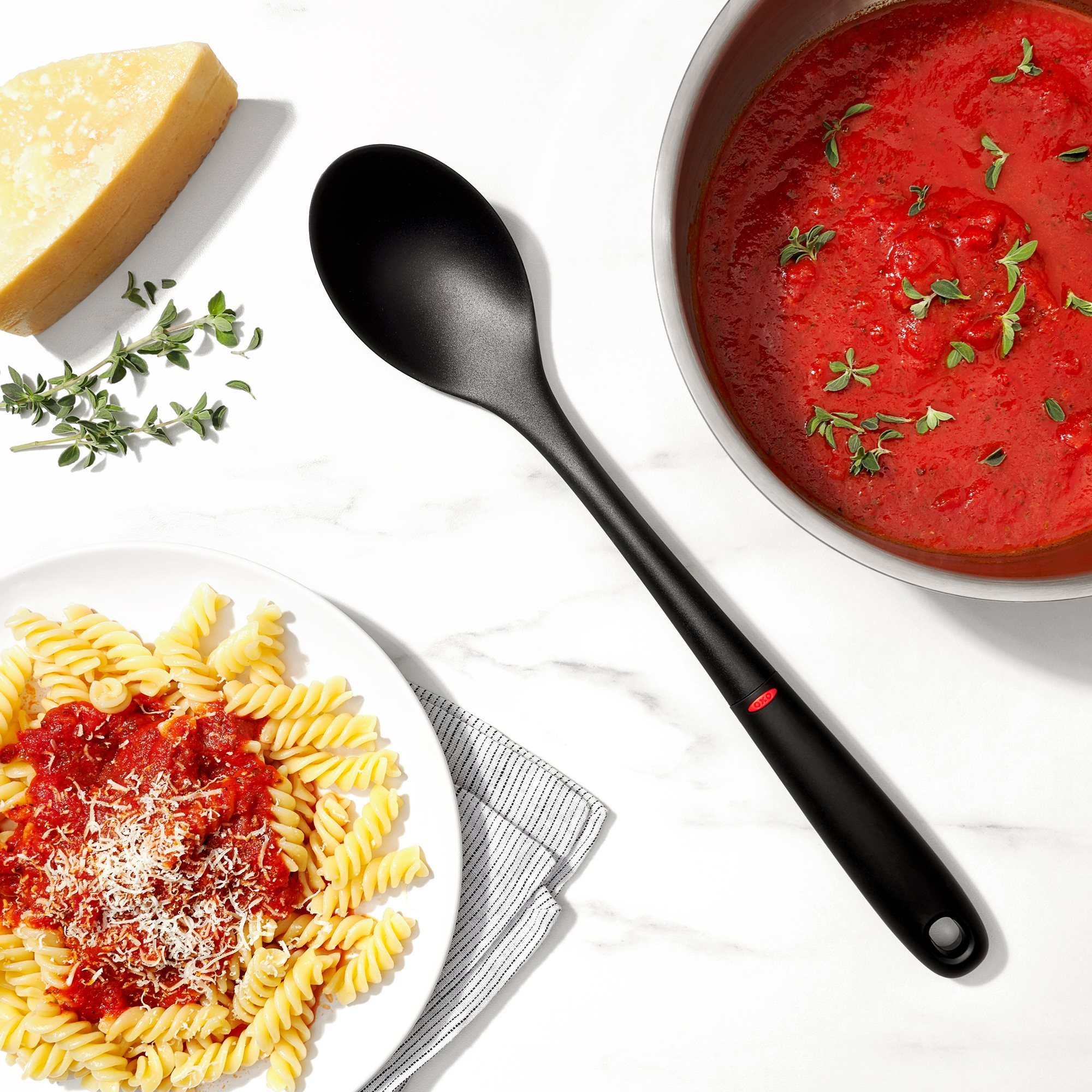 I prodotti in nylon a marchio OXO beneficiano di un'alta qualità,essendo dotati di estremità sovradimensionate e maniglie confortevoli. Le estremità resistono alle alte temperature e sono adatte per pentole con superficie antiaderente.